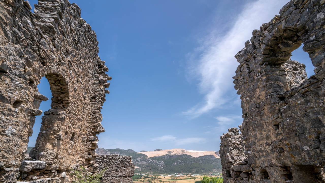 Dikdörtgen bir yapıya sahip kale geniş bir alana yayılmakta.