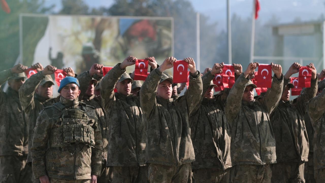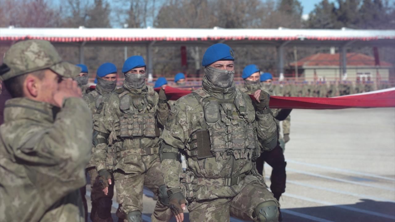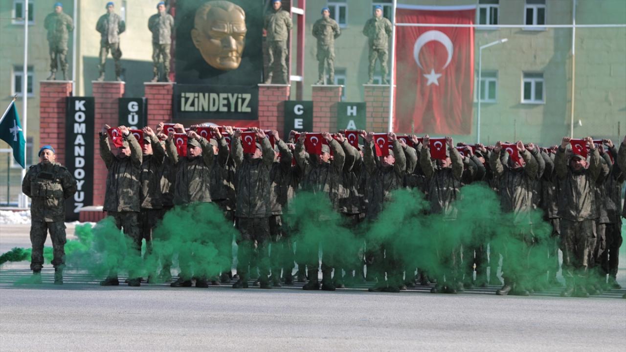 Eğitimlerini tamamlayan uzman erbaş ve sözleşmeli erler, komando andı okudu, ardından mavi berelerini taktı.