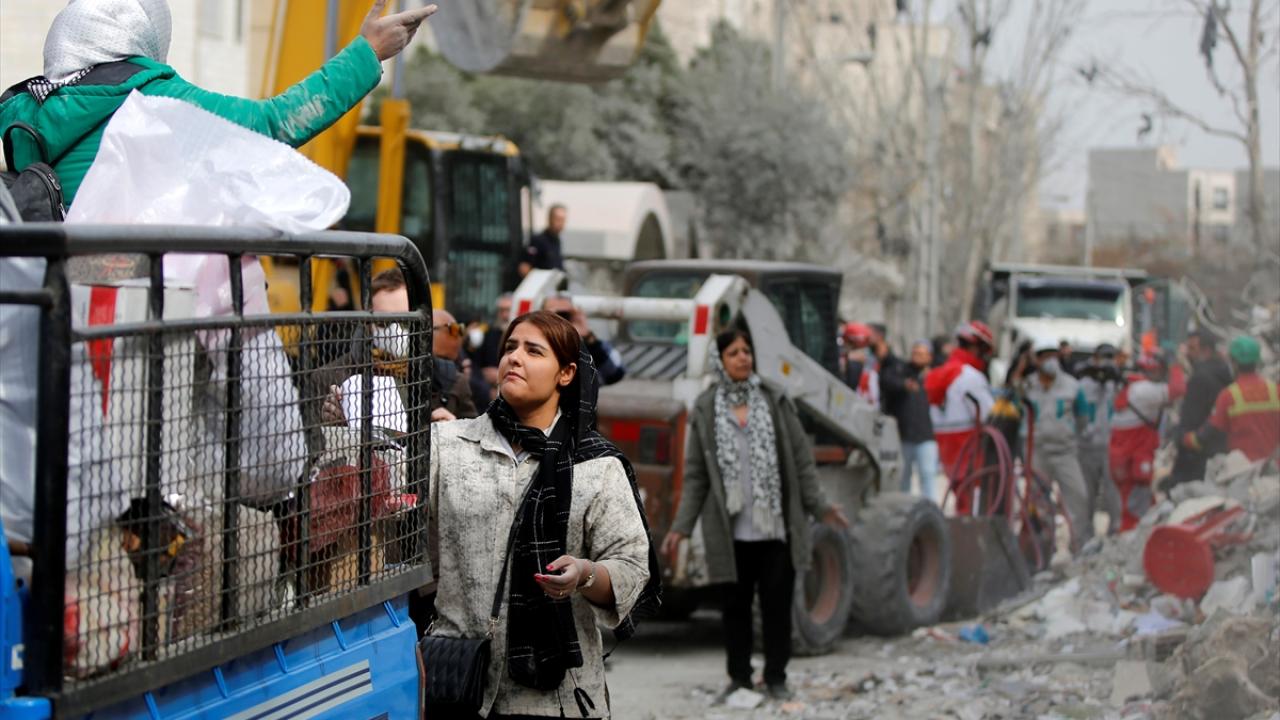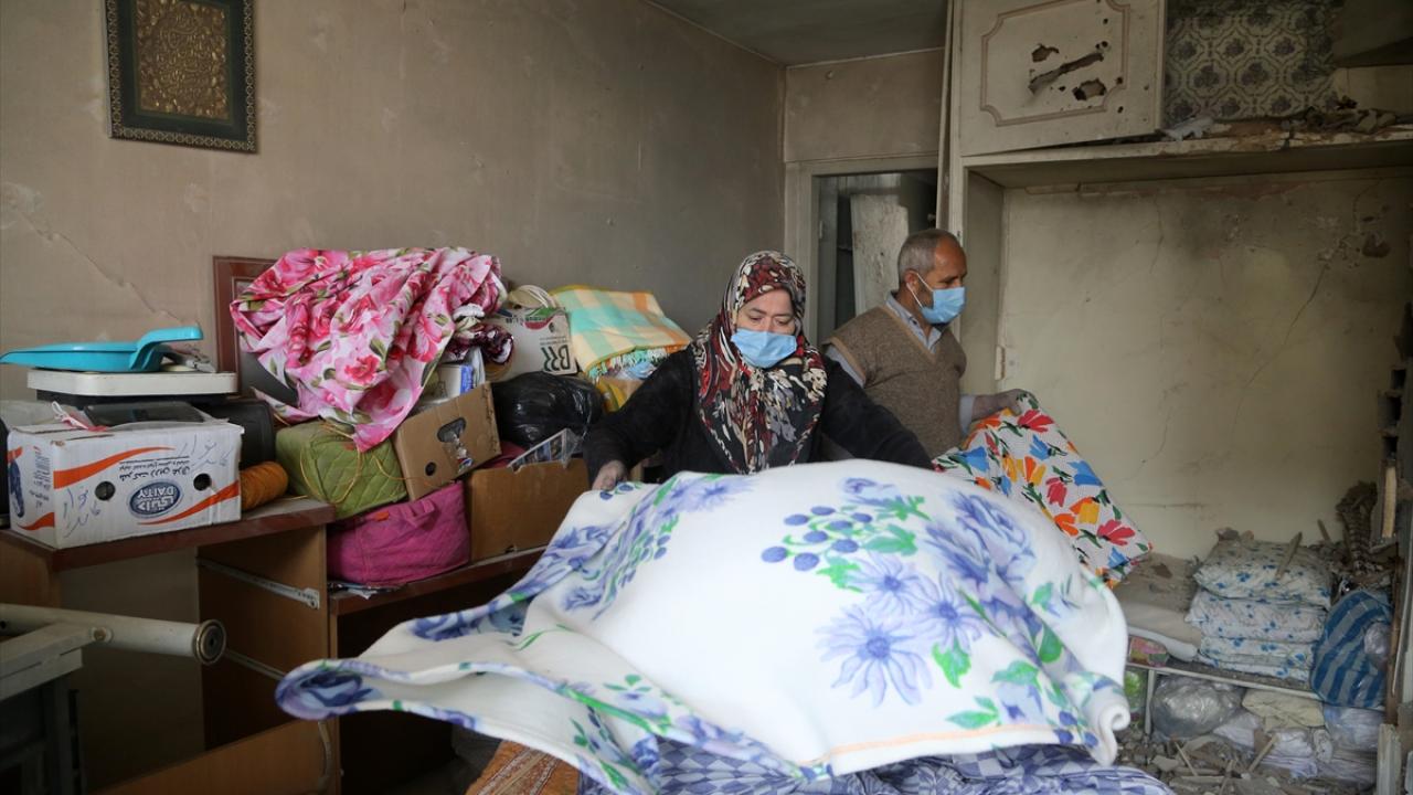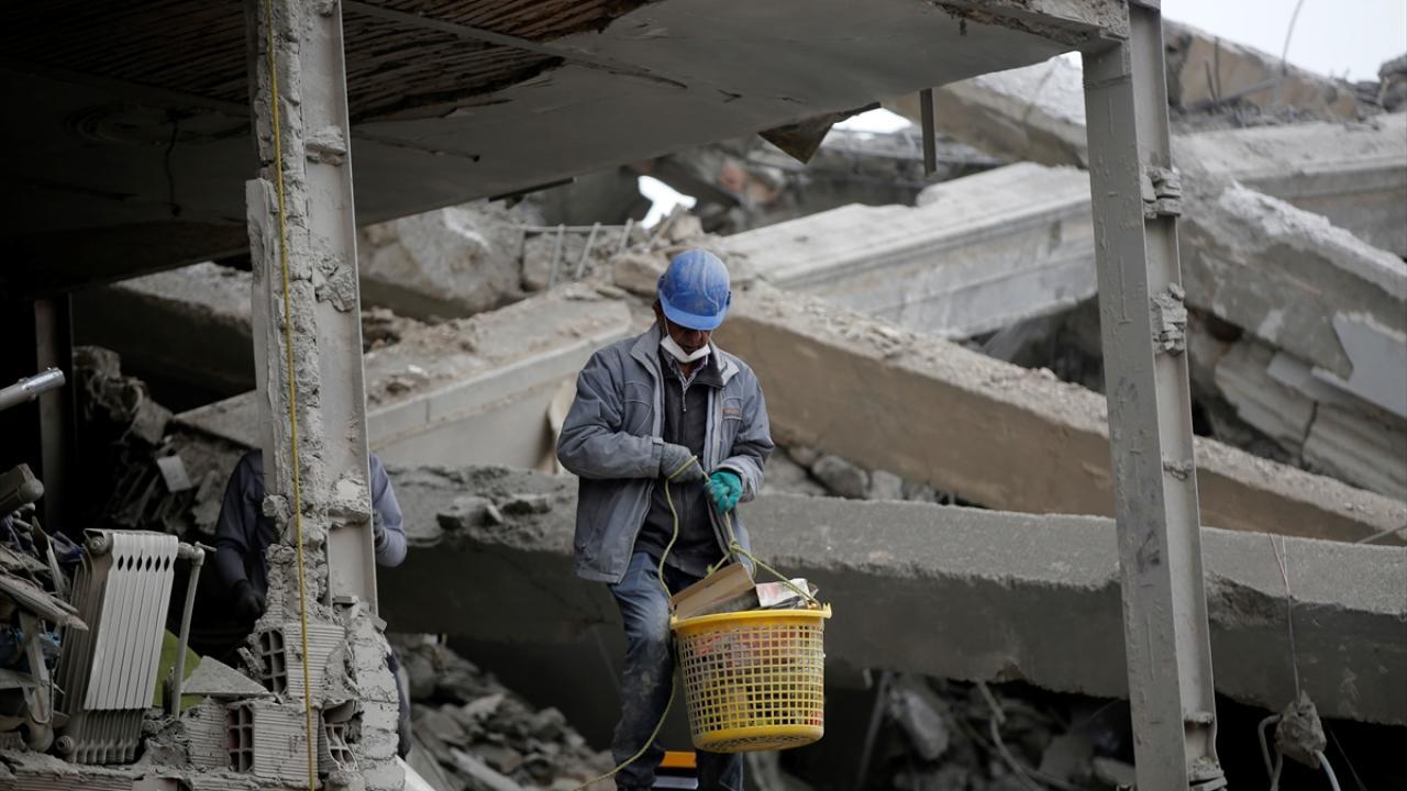 Yıkılan binalarda arama ve kurtarma çalışmalarının tüm hızıyla sürdüğü bölgede vatandaşlar, harabeye dönmüş evlerinden eşyalarını tahliye etmeye çalışıyor.