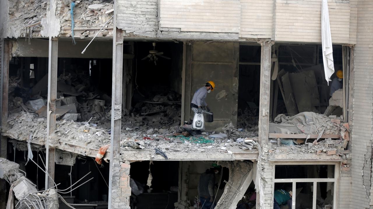 Bölgede moloz kaldırma çalışmaları sürerken İranlı yetkililer enkaz altında hala 20 kişinin olduğunu belirtiyor.