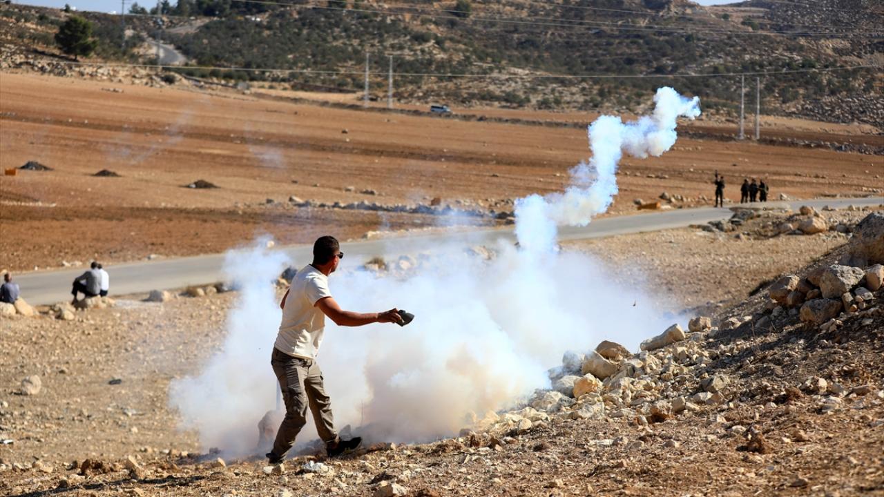 İsrail ordusu, Batı Şeria’nın El-Halil kenti batısındaki İzna kasabasına bağlı El-Celatiye bölgesinde, kendi arazilerine girmeye çalışan Filistinli çiftçilere göz yaşartıcı gaz ve ses bombalarıyla müdahale etti.