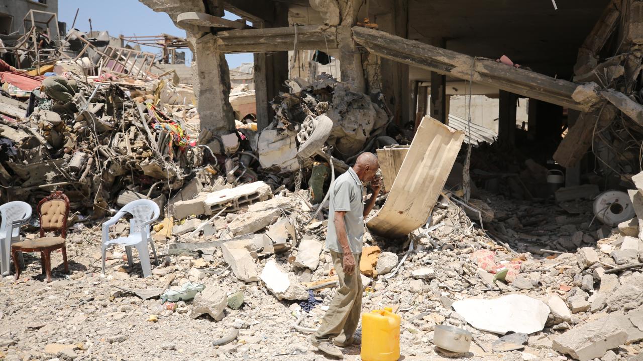 Filistinli, "F-16`larla evlerimizi yıktılar. Yıkımı görüyorsunuz. Ölümden mucize eseri kurtulduk. Söyleyin bize nereye gidelim. Ne okul kaldı, ne barınma merkezi ne de ev. Sokakta kaldık ama Allah`ın izniyle sabredeceğiz, direneceğiz ve yeniden imar edeceğiz." dedi.
