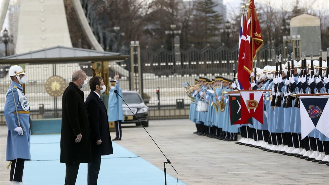 Ardından Cumhurbaşkanlığı Külliyesi`ne geçen Herzog burada Cumhurbaşkanı Recep Tayyip Erdoğan tarafından resmi törenle karşılandı.