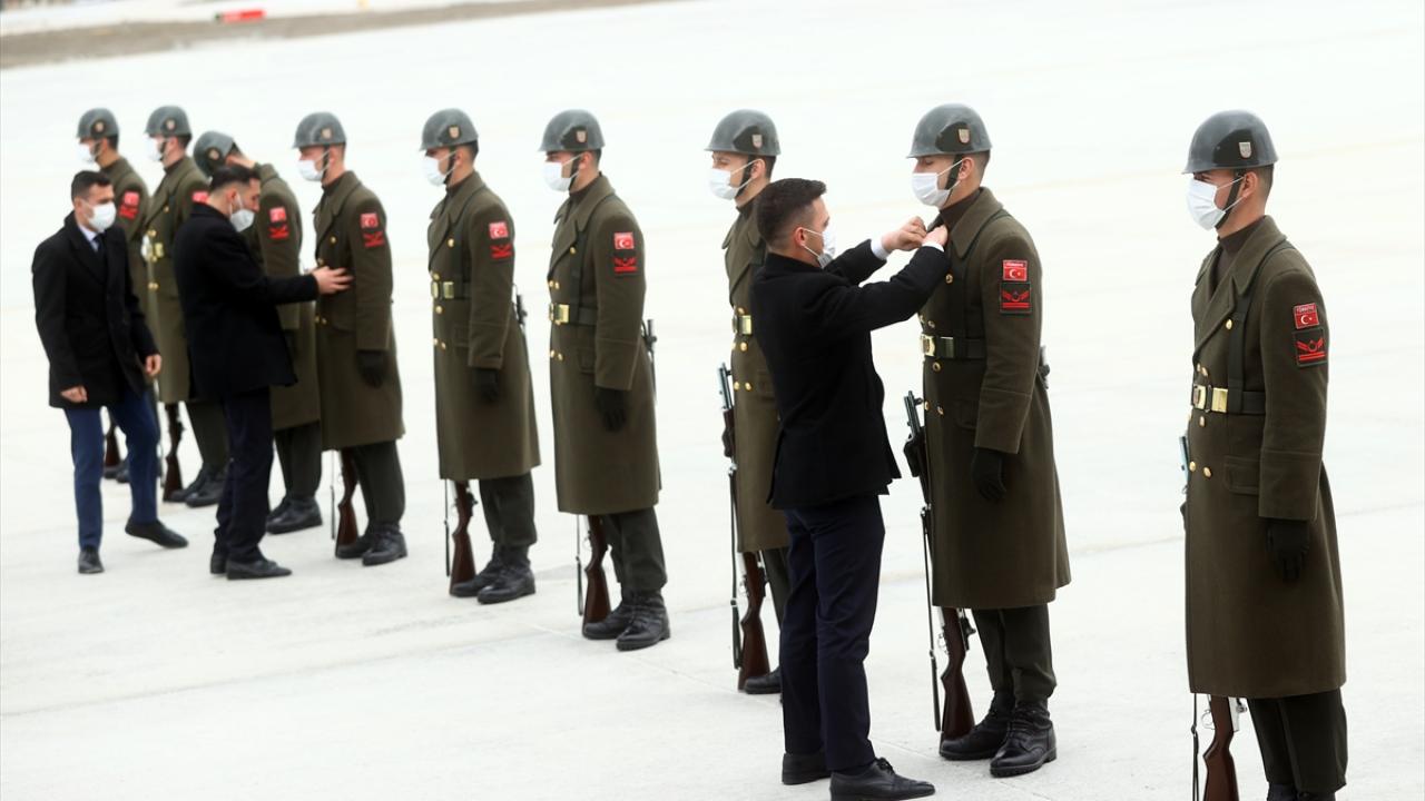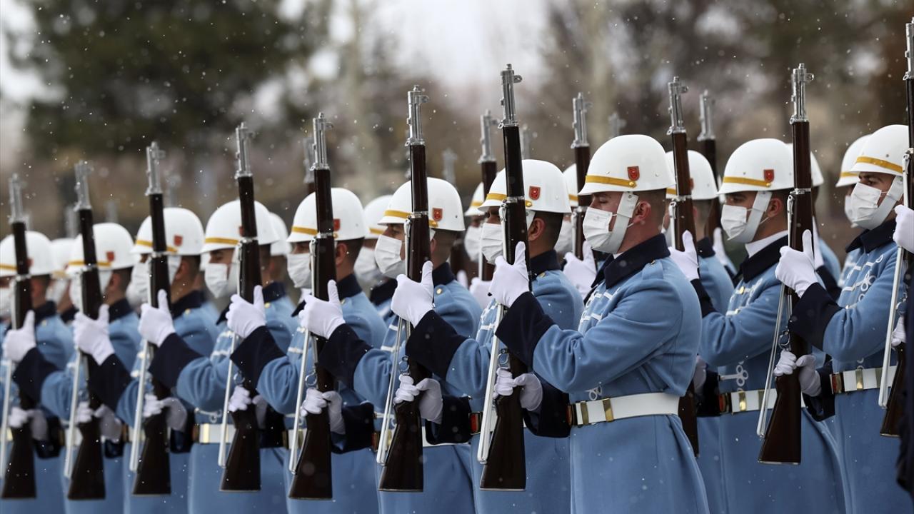 Erdoğan ve Herzog`un tören alanındaki yerlerini almalarının ardından, 21 pare top atışı eşliğinde iki ülke milli marşları çalındı. Herzog, Muhafız Alayı Tören Kıtası`nı, Türkçe "Merhaba asker" diyerek selamladı.