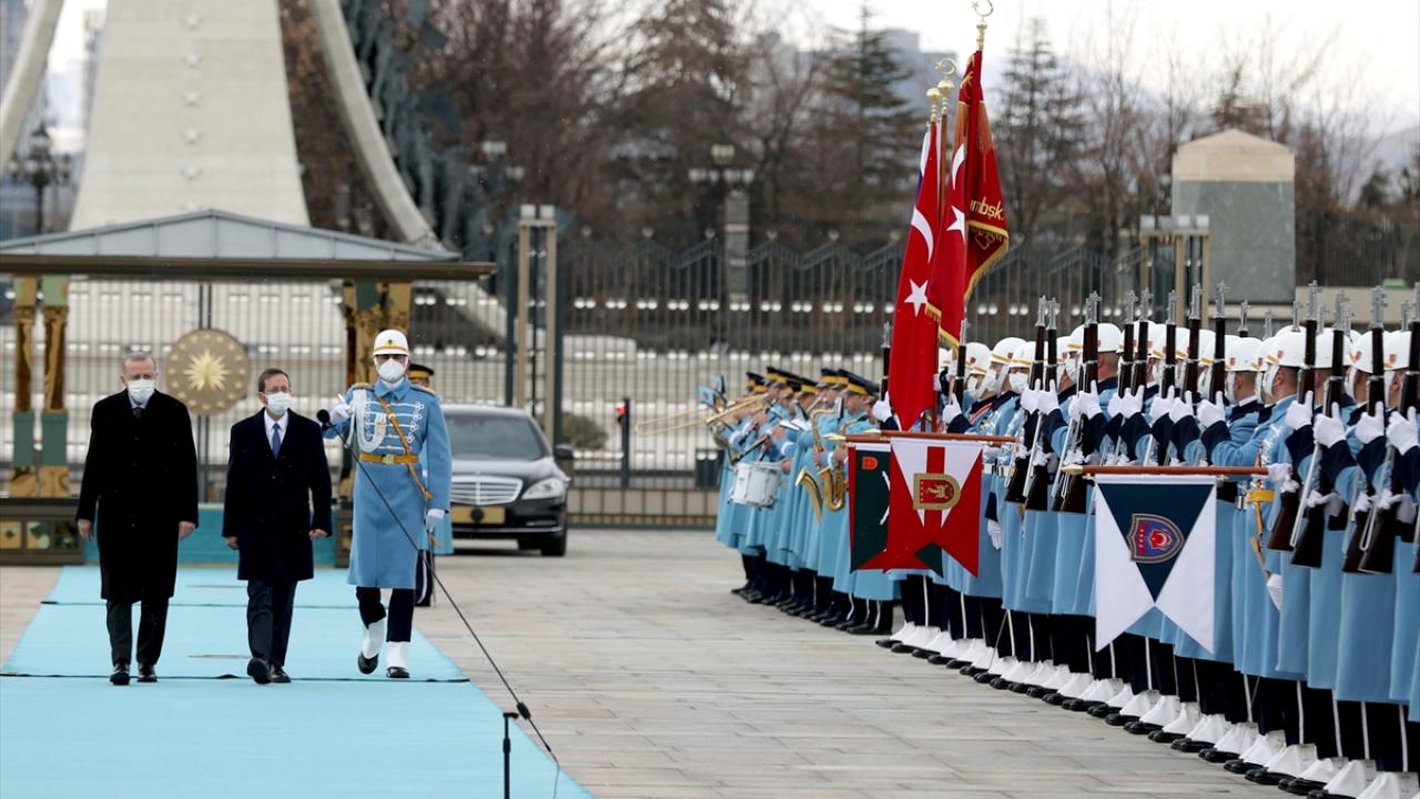 İsrail Cumhurbaşkanı Isaac Herzog, resmi temaslarda bulunmak üzere Ankara'ya geldi. Cumhurbaşkanı Erdoğan, Herzog'u Cumhurbaşkanlığı Külliyesi'nde resmi törenle karşıladı.