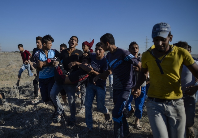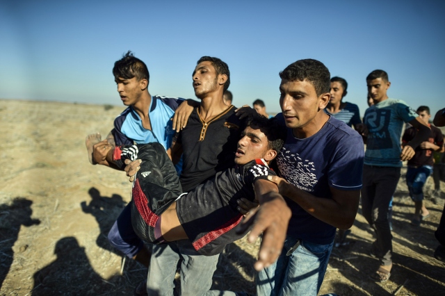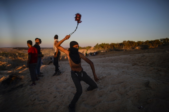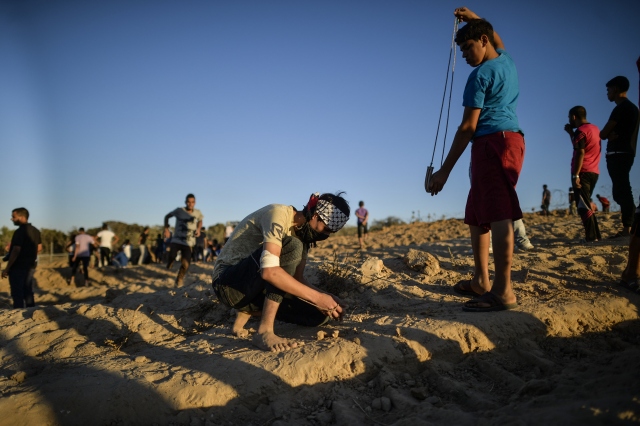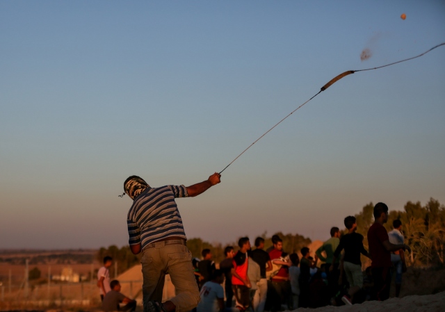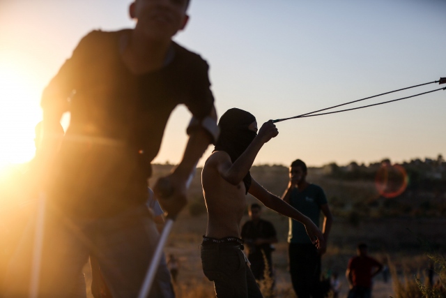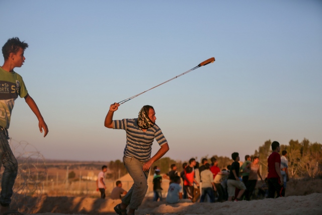 Gazze'nin İsrail sınırında toplanan Filistinli gençler, İsrail güçlerinin Batı Şeria'da Filistinlilere yönelik ihlallerini protesto etti. İsrail güçlerinin gösteriye müdahalesi üzerine Filistinliler sapanla taş atarak karşılık verdi.