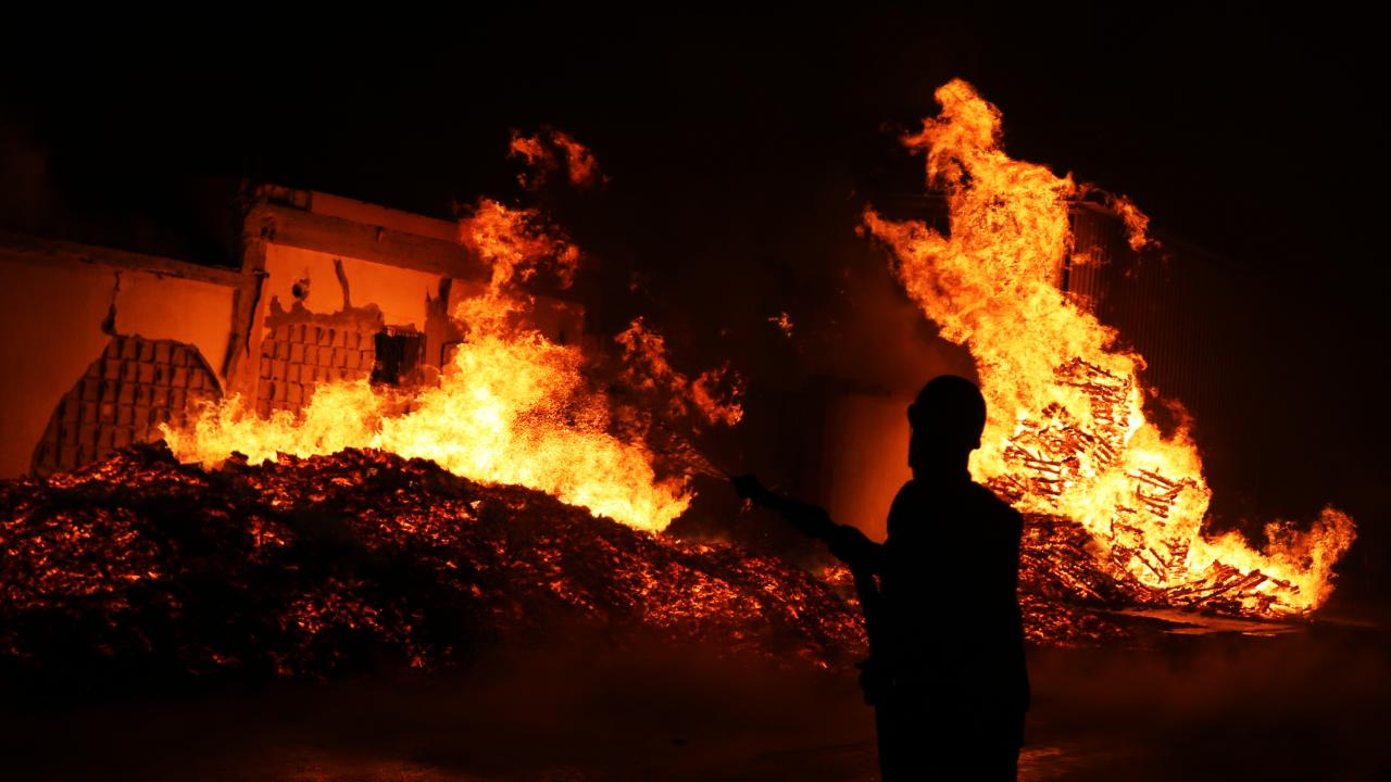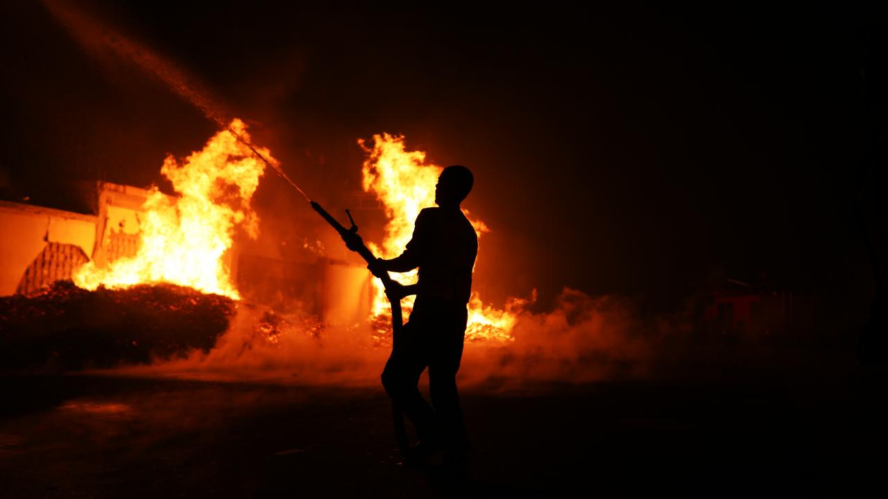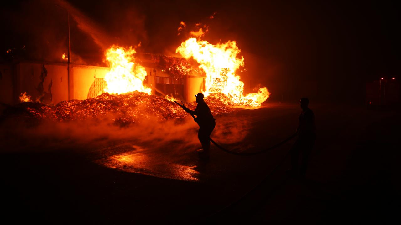 İtfaiye ekiplerinin yangını kontrol altına almaya çalıştığı ifade edilen açıklamada, topçu birliklerinin fabrika, ev ve tarım alanlarına saldırılarını sürdürdüğü aktarıldı.