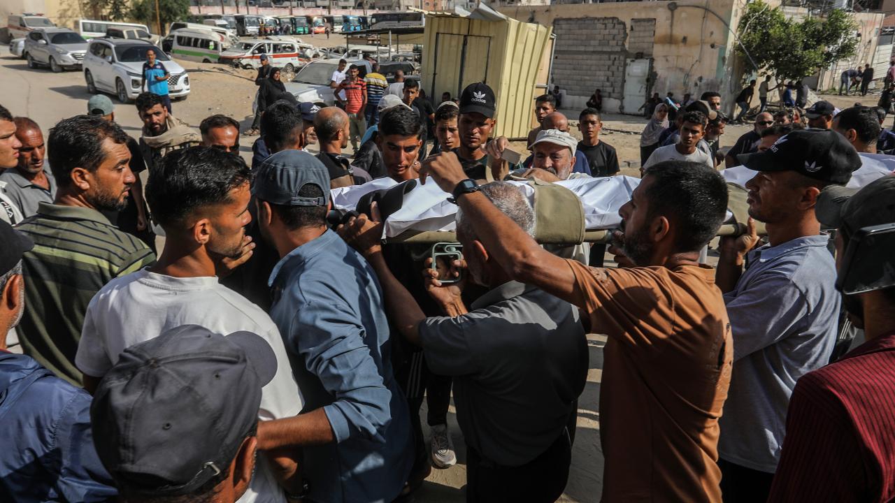 İsrail ordusu, Gazze Şeridi’nin Refah kenti yakınlarındaki El-Alam bölgesinde insani yardım almak için bekleyen Filistinlilere saldırı düzenledi. Saldırıda yaşamını yitiren Filistinliler için Han yunus kentindeki Nasır Hastanesi’nde cenaze töreni düzenlendi. Hayatını kaybedenlerin yakınları üzüntü yaşadı.
