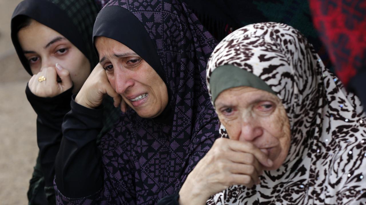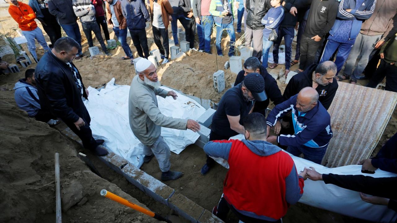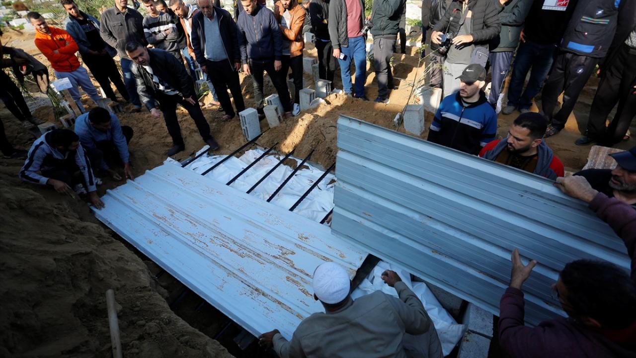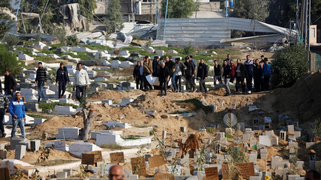 Deyr el-Belah kentine düzenlenen saldırılar sonucu hayatını kaybedenlerin naaşı, kent mezarlığında hazırlanan toplu mezara defnedildi.