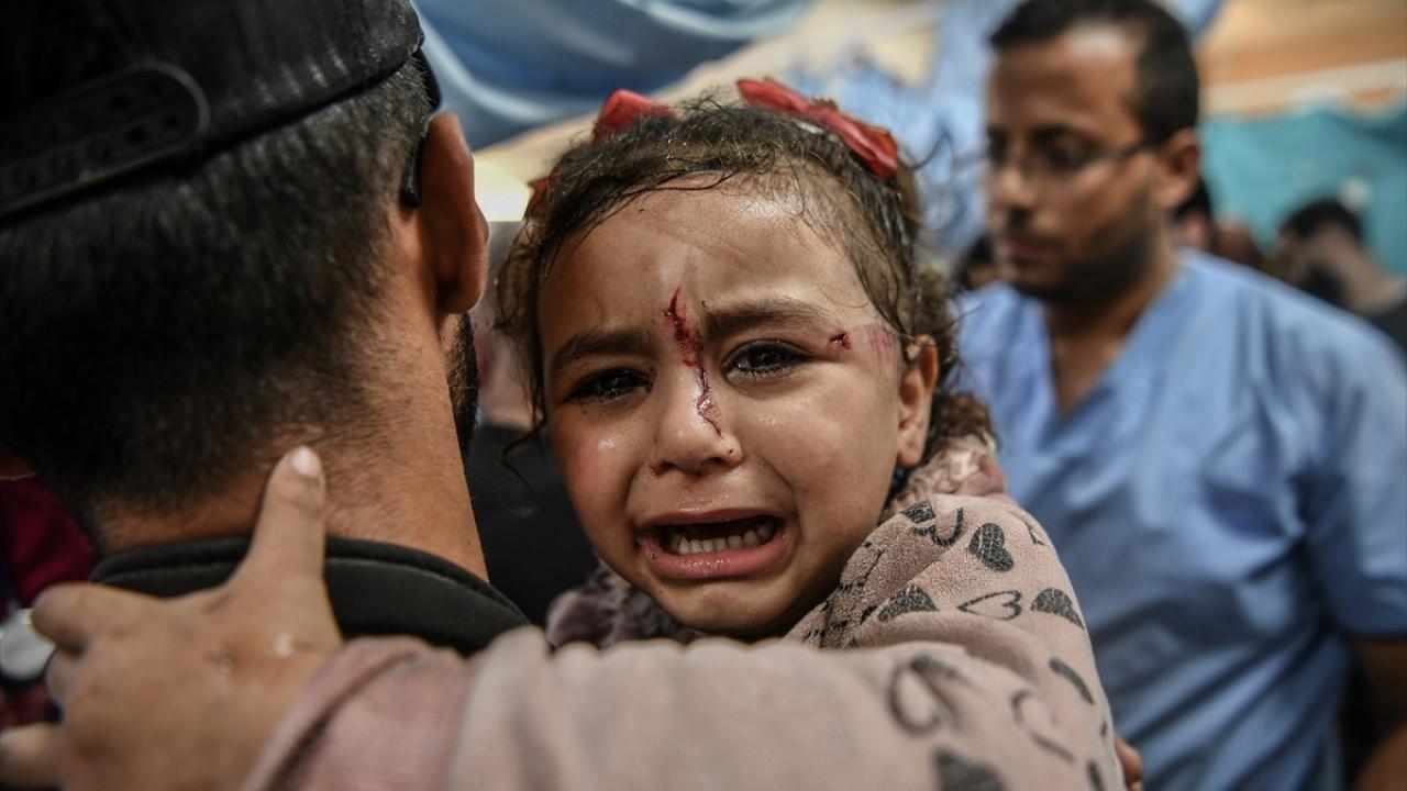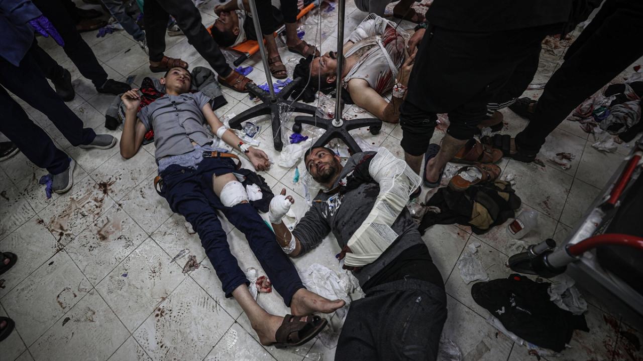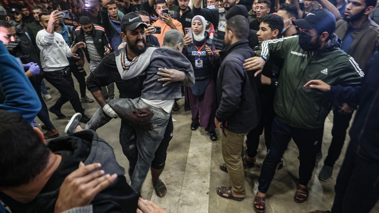 İsrail saldırıları sonucu aralarında çocukların da bulunduğu yaralılar, Han Yunus kentindeki Nasser Hastanesi`ne getirildi.
