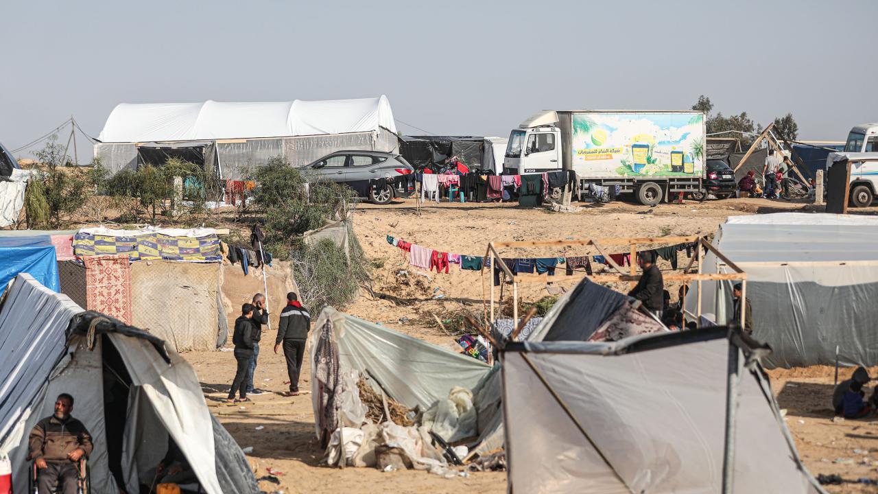 Saldırılar nedeniyle evlerinden olan Filistinliler, Han Yunus kentinde kurdukları derme çatma çadırlarda yaşamlarını sürdürüyor.