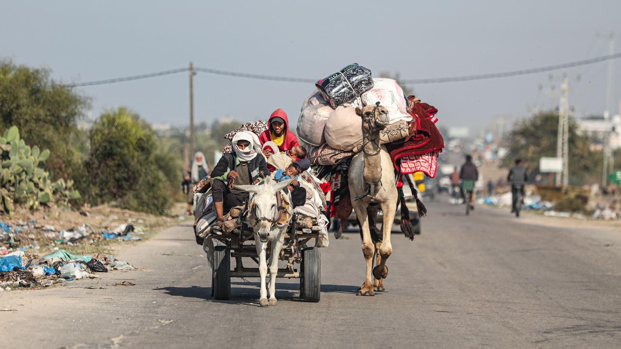 Saldırılar nedeniyle evlerinden olan bazı Filistinliler, Han Yunus kentinden göç etti.