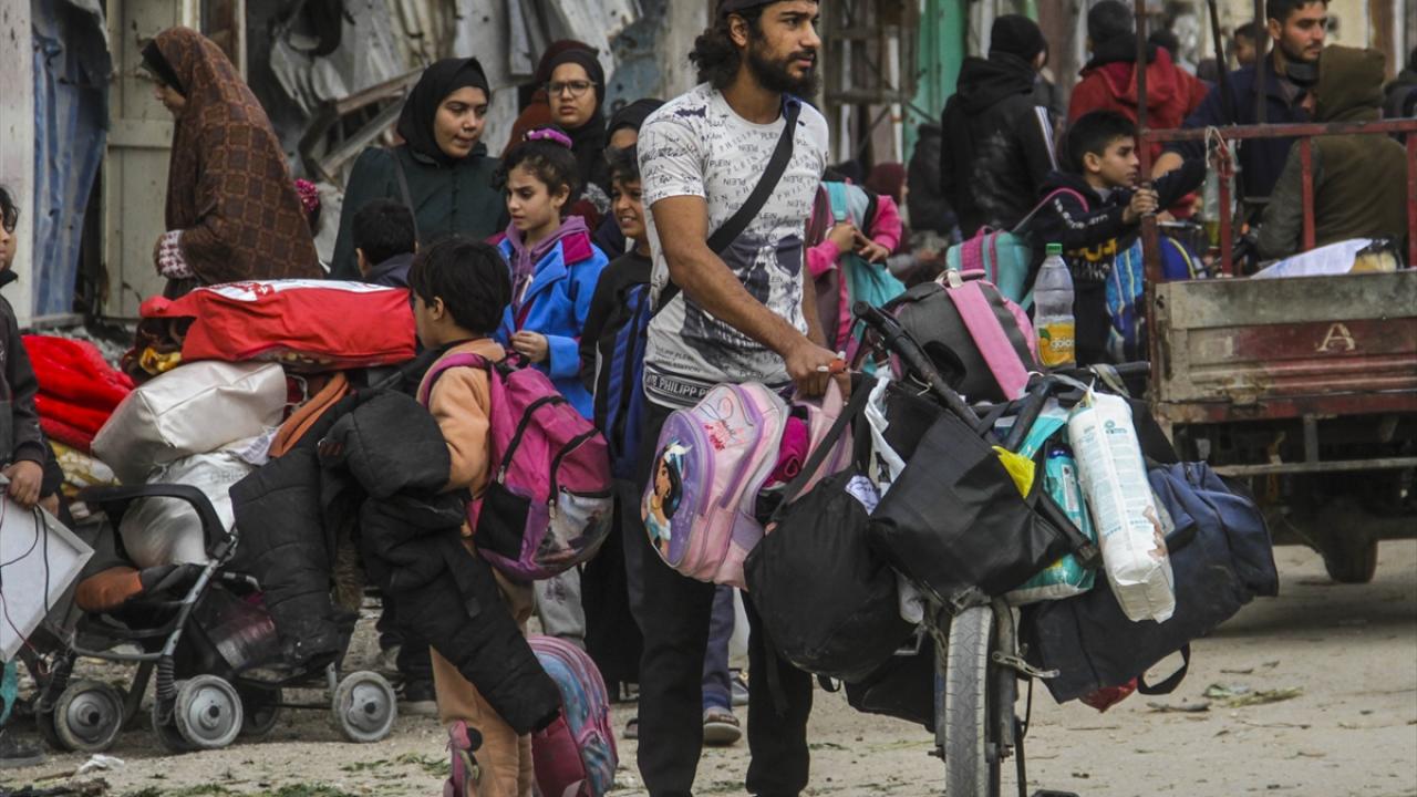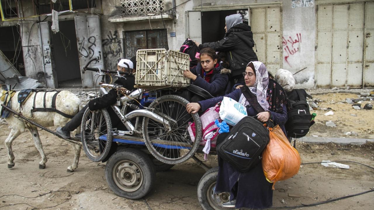 Filistinli aileler, yanlarına alabildikleri eşyalarla birlikte Gazze kentine ulaştı.