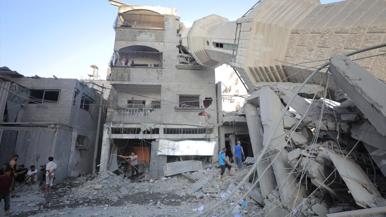 İsrail ordusu, Gazze'nin orta kesimindeki Nasirat Mülteci Kampı'nda Abdullah Azzam Camisi ve çevresindeki binaları hedef aldı.