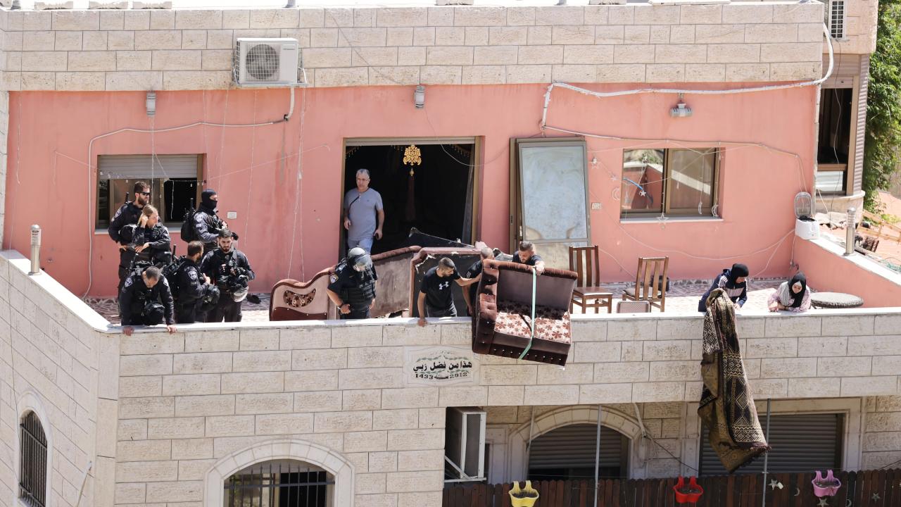 Mahalle sakinleri, İsrail polisinin Recebi ailesini, 8 yıl önce inşa ettikleri 2 katlı evlerinden zorla tahliye ettiğini söyledi.