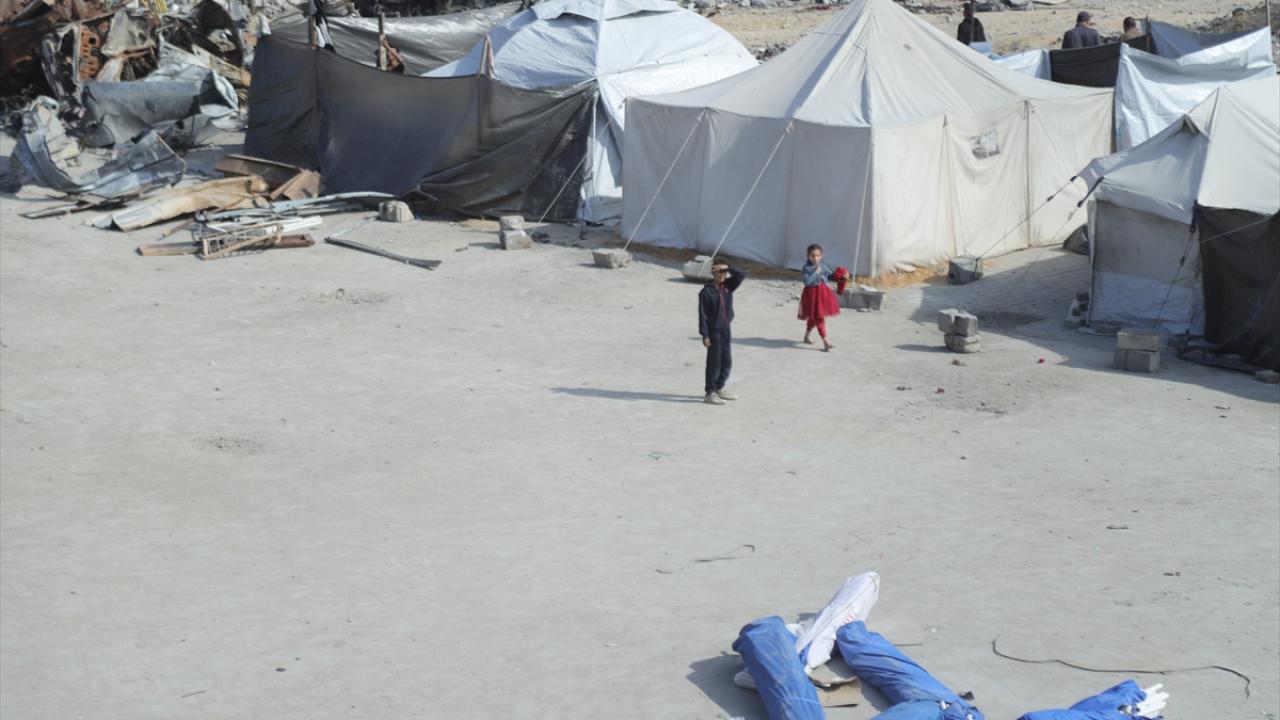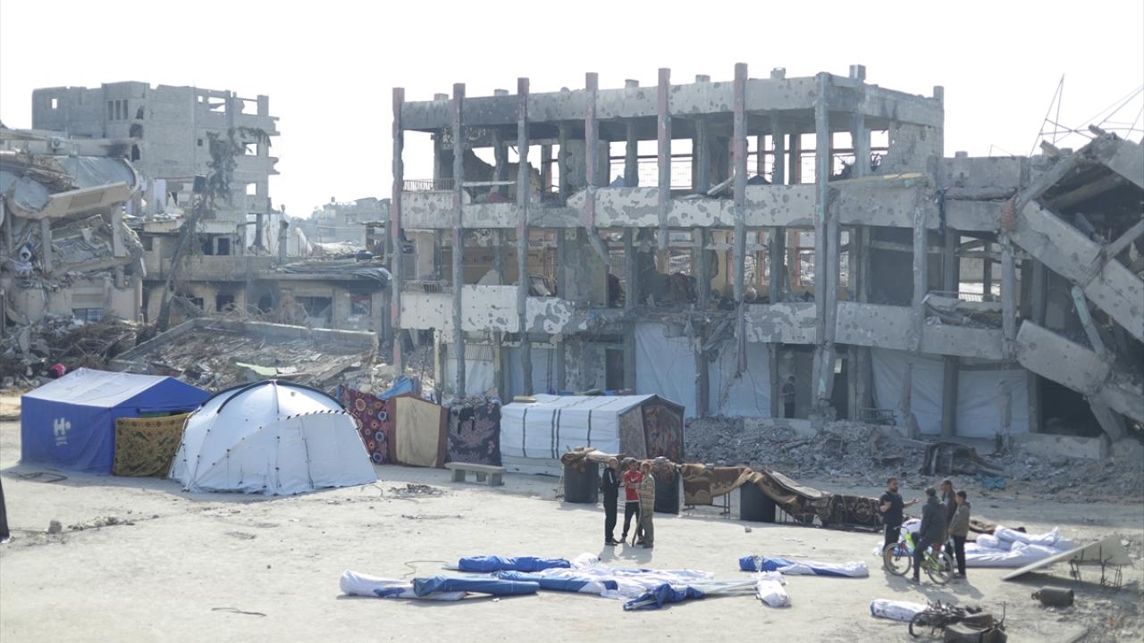 Ateşkesin ardından bölgeye dönen Filistinliler, okulun bahçesinde çadır kurmaya başladı.