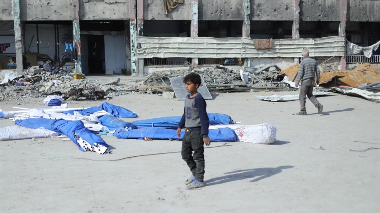 İsrail'in 470 gün sürdürdüğü saldırılarında Gazze Şeridi'nin kuzeyinde yer alan Faysal Bin Fahd Okulu ağır bir yıkım meydana geldi.