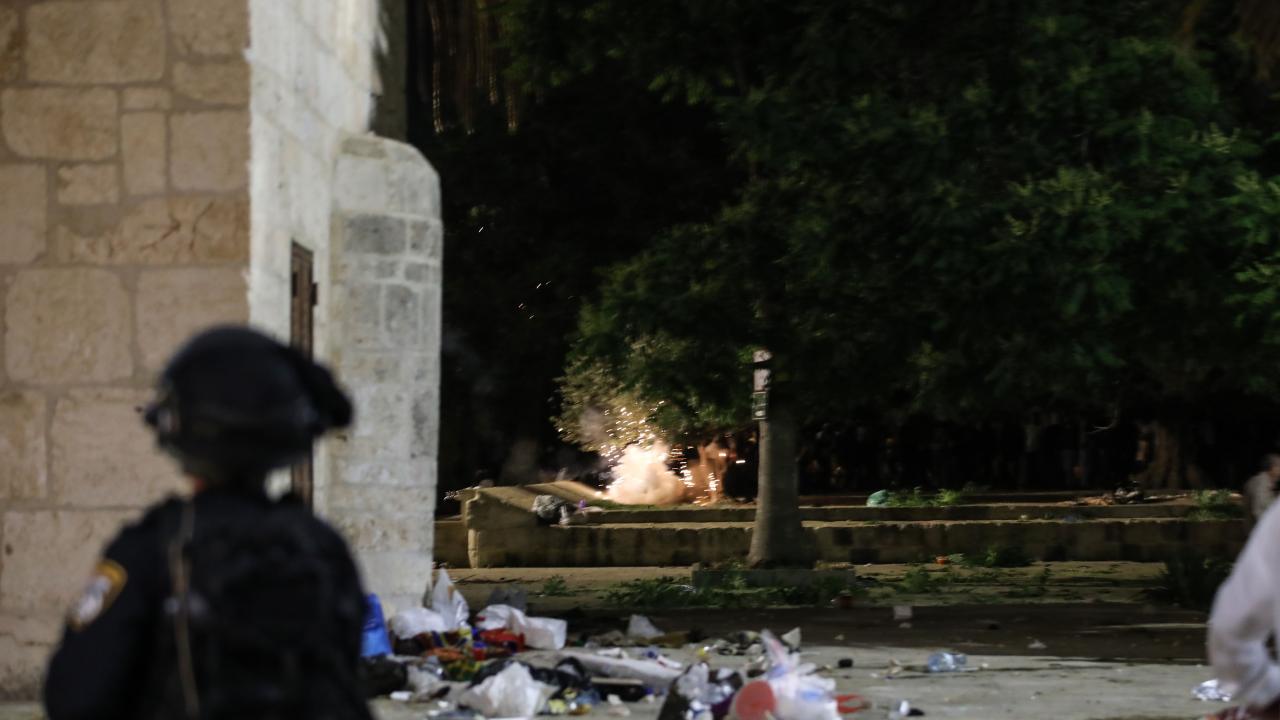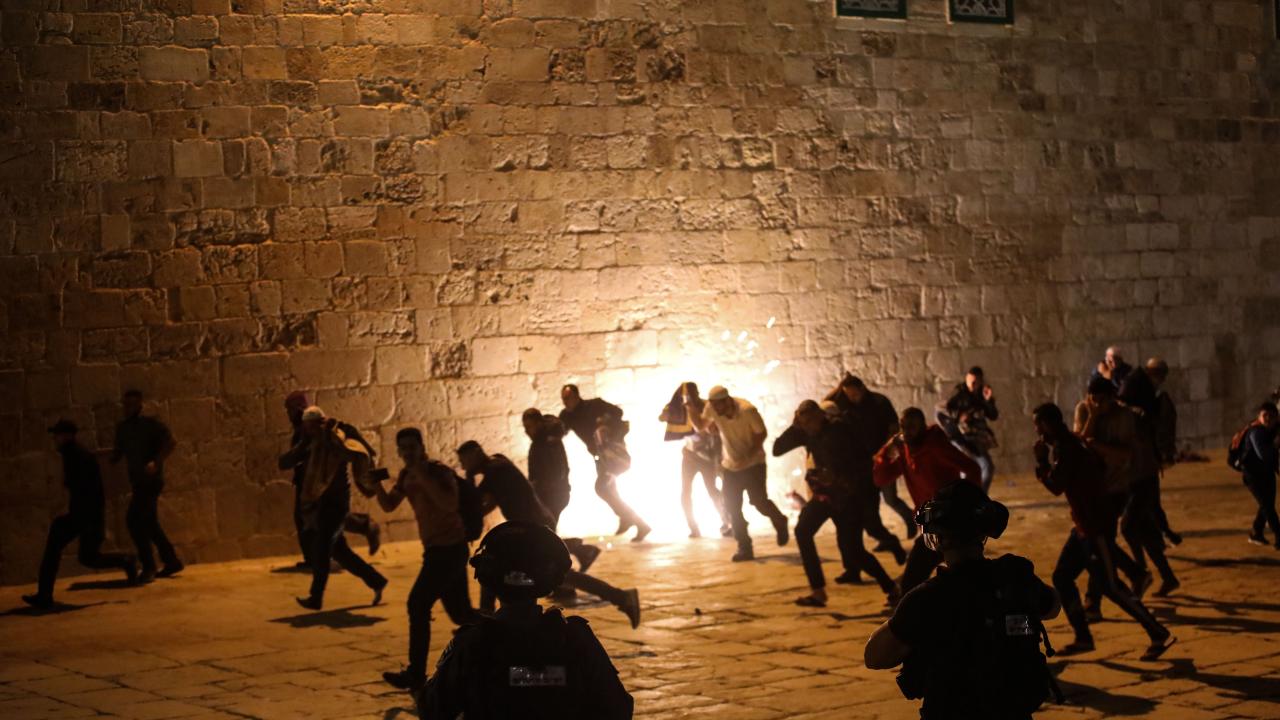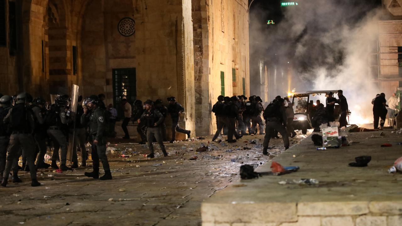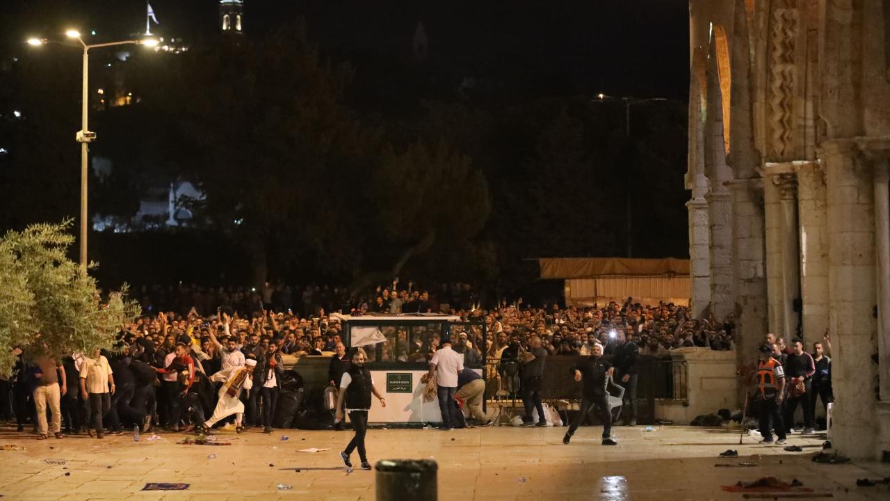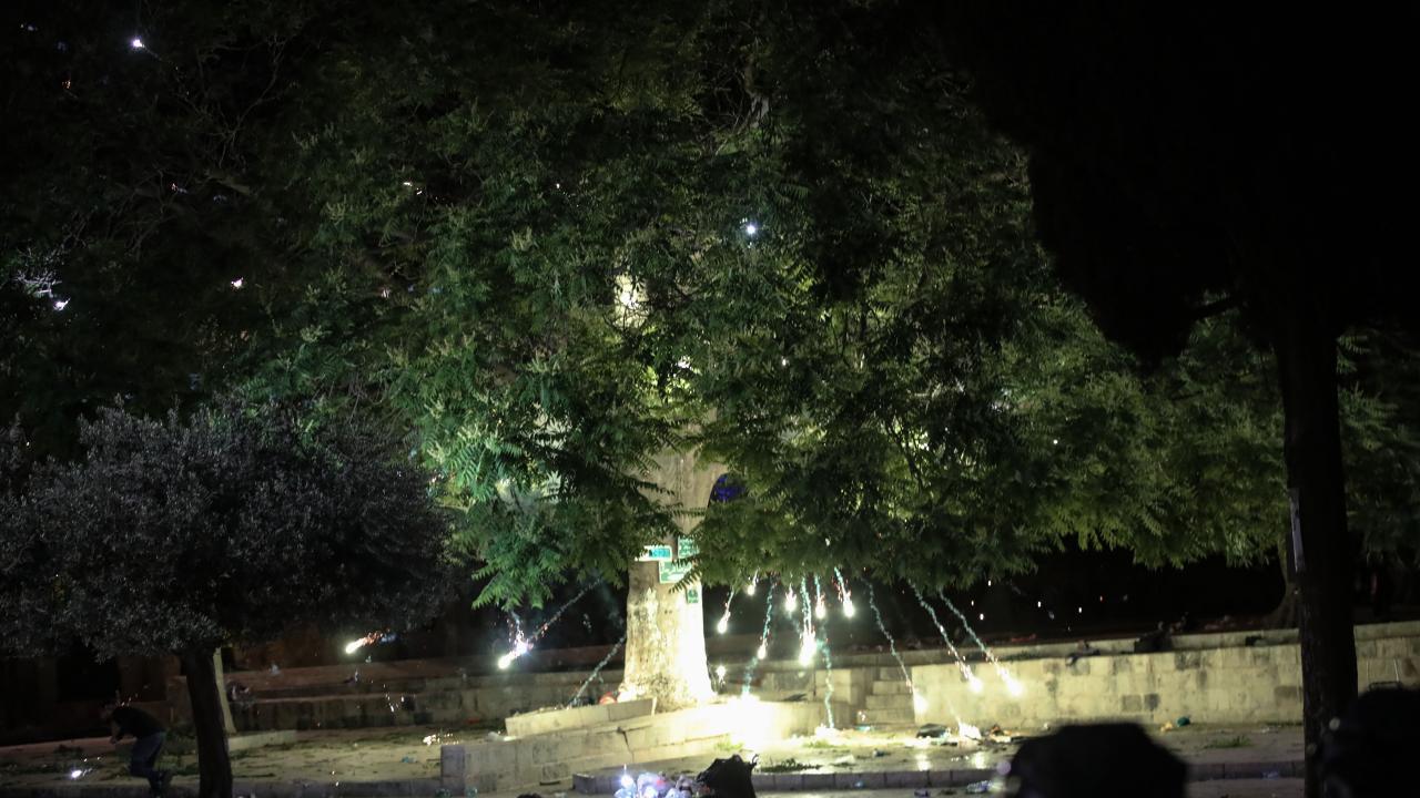 Akşam saatlerinde İsrail polisi cemaate saldırdı. Filistinliler, işgal altındaki Doğu Kudüs`teki Mescid-i Aksa`da yatsı namazını kılmak için toplandı.