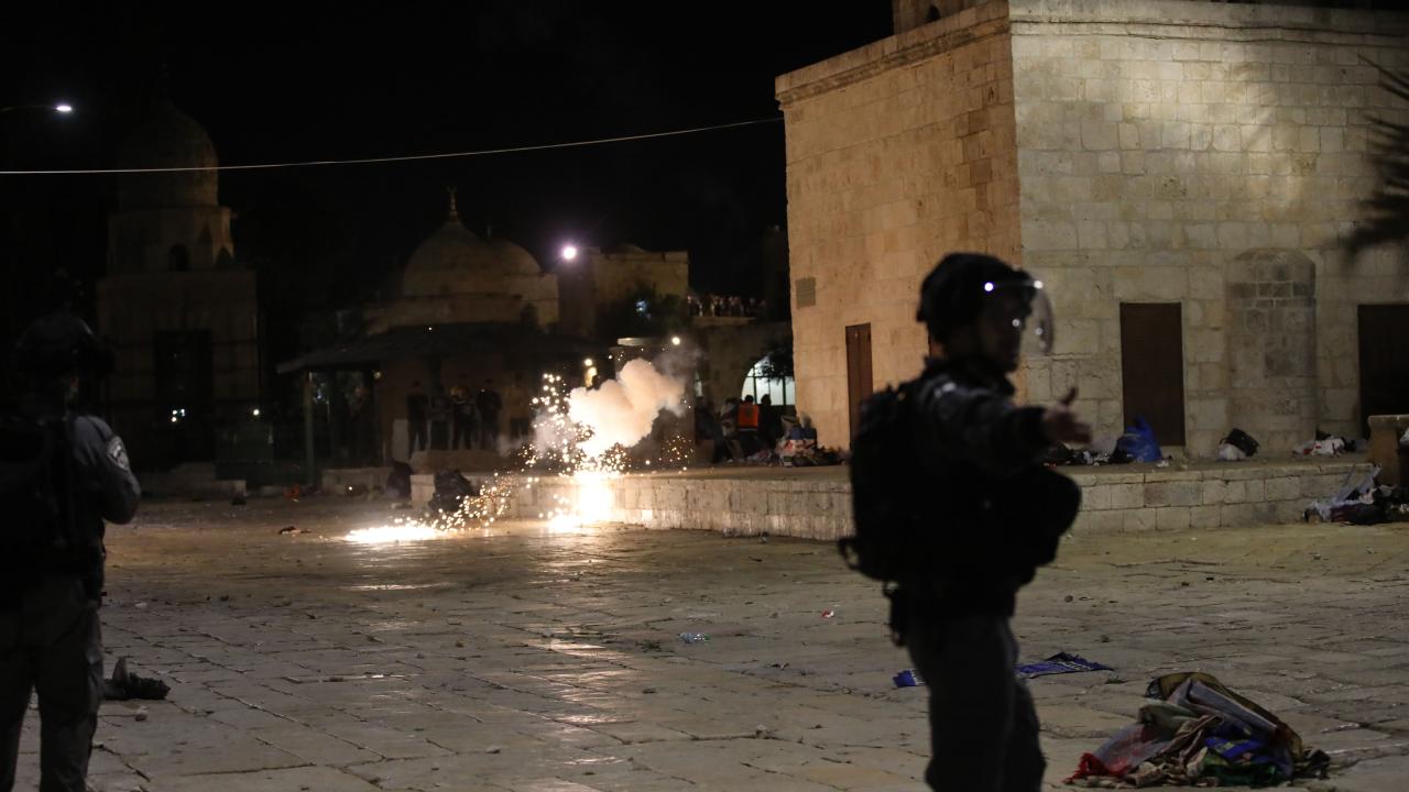 Mescid-i Aksa’ya giren İsrail polisi, Kıble Mescidi’nin içinde namaz kılan cemaate ses bombalarıyla saldırdı. Saldırı anı kameraya yansıdı. İsrail polisinin saldırılarında yaralanan Filistinlilerin sayısı 178'e yükseldi.