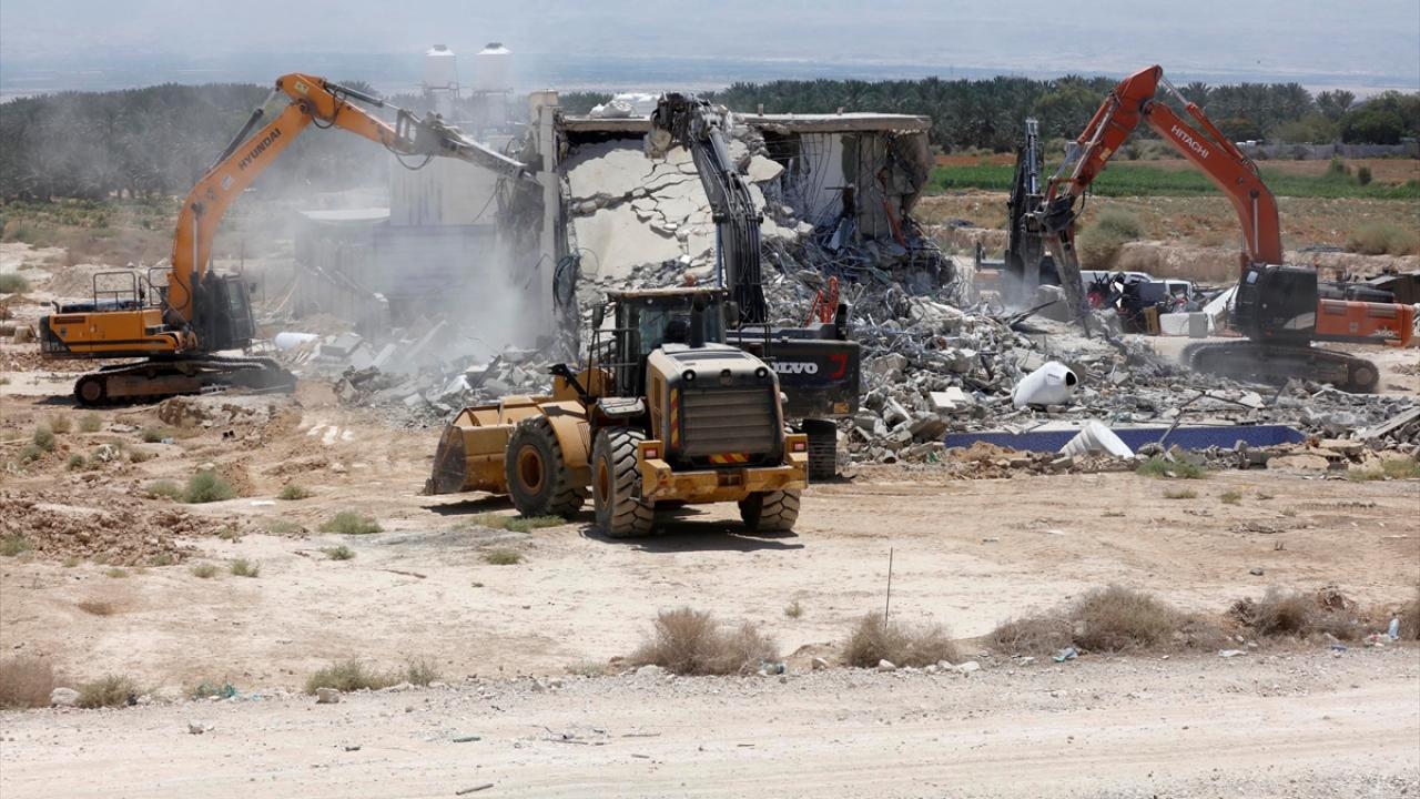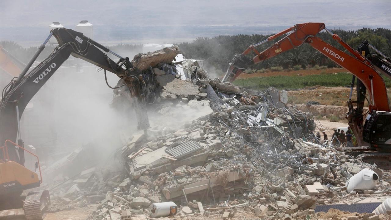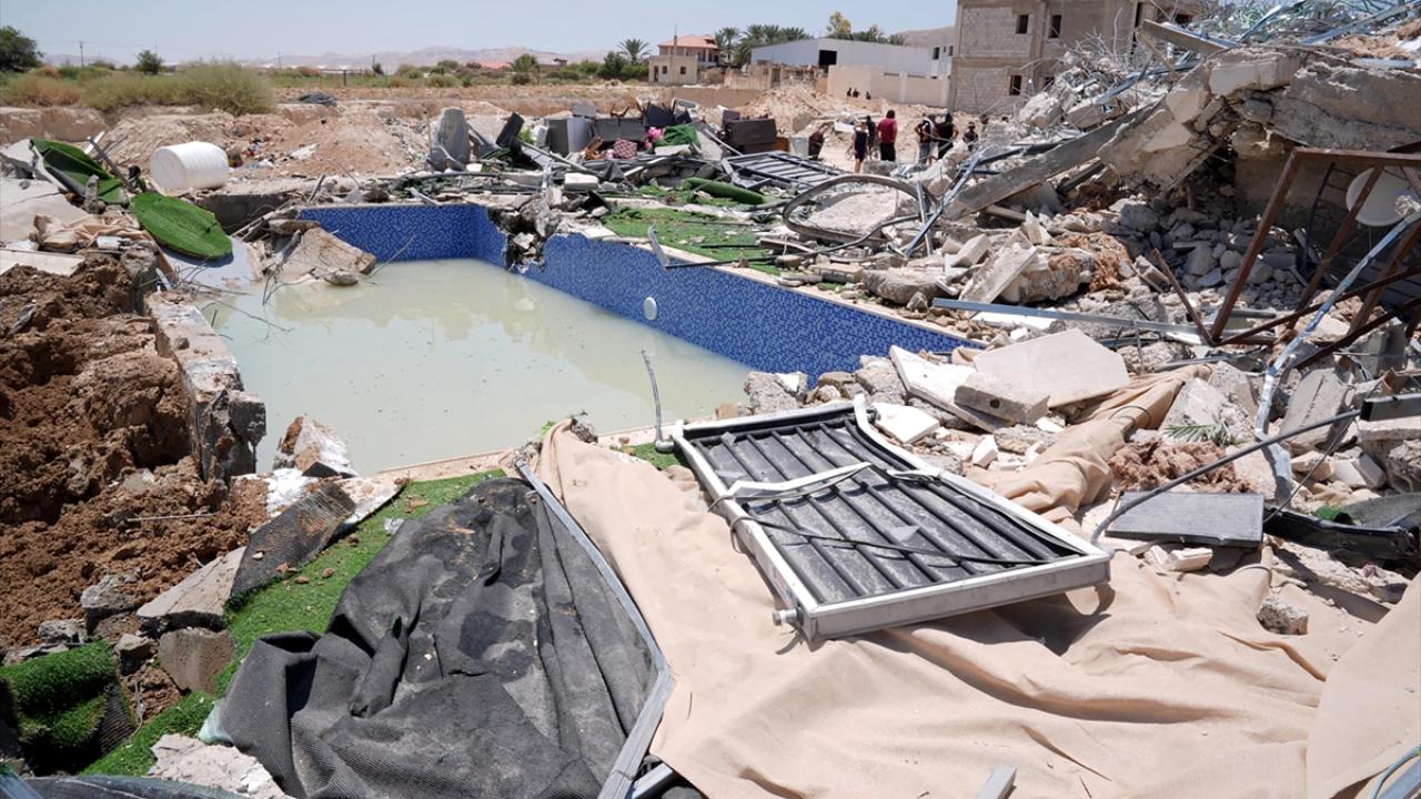 İş makineleriyle bölgeyi basan İsrail ordusu, Filistinlilere ait 4 turistik villayı yıktı.