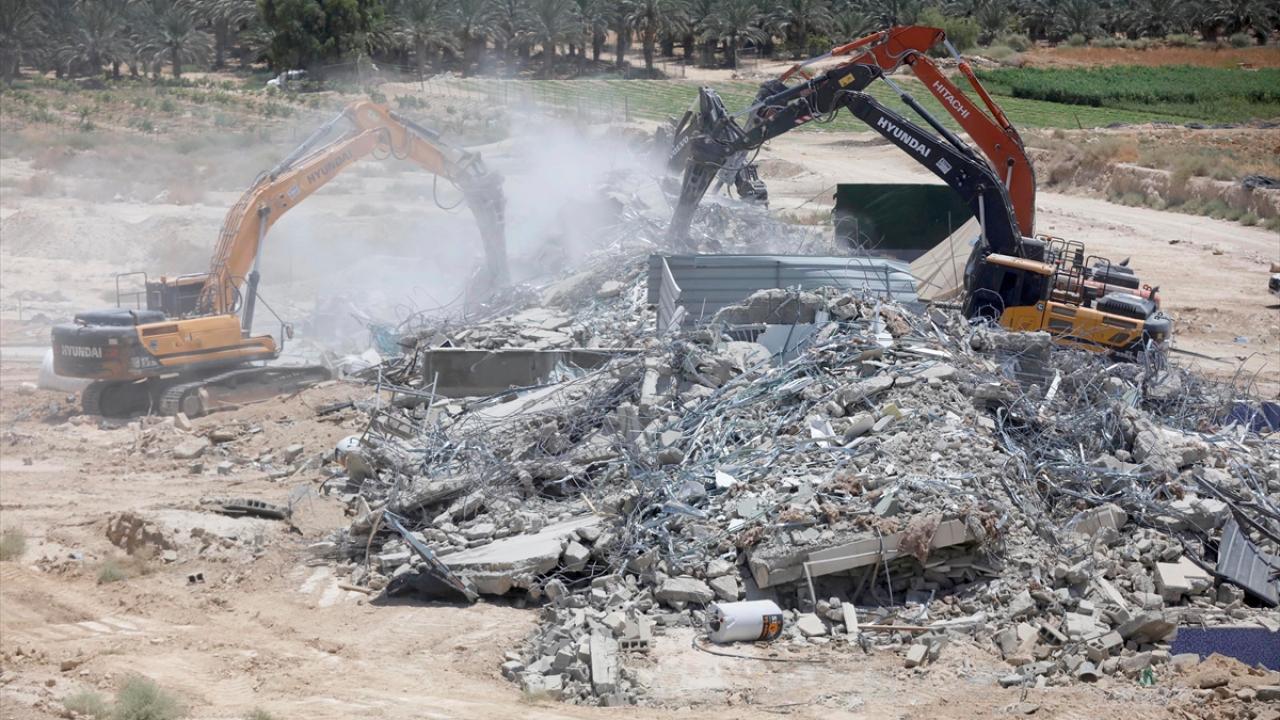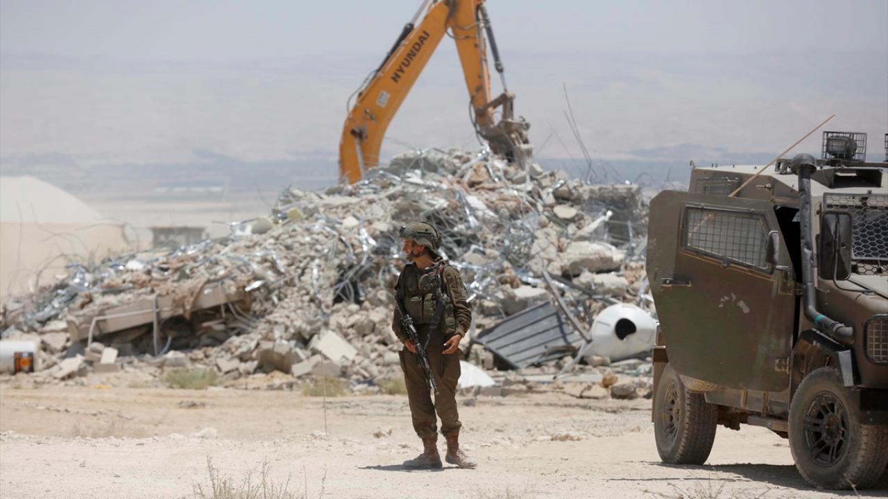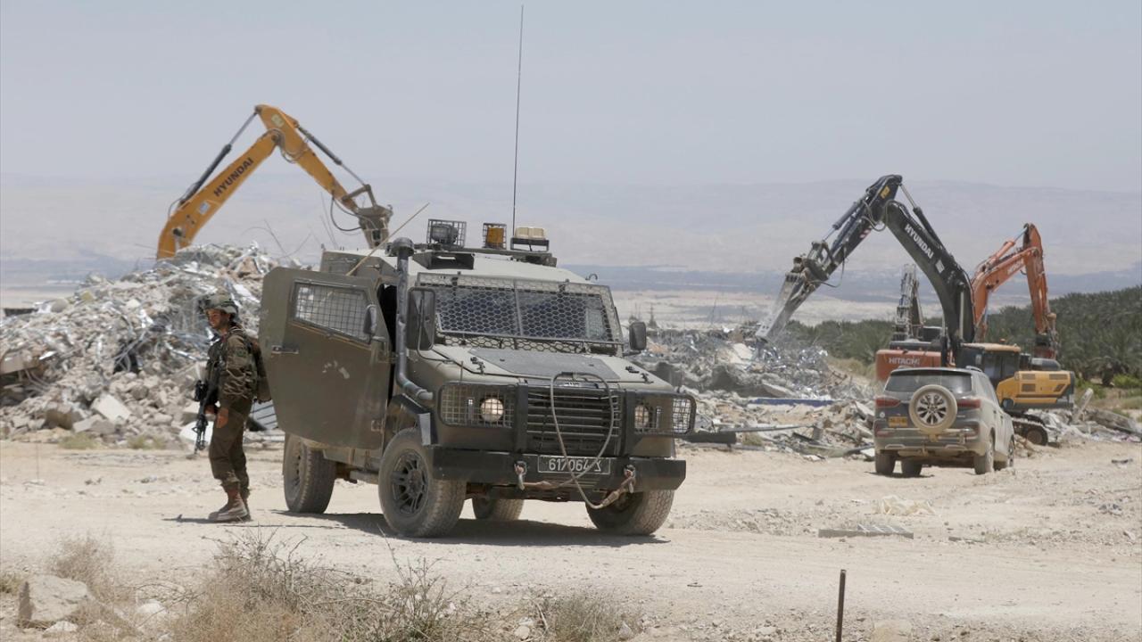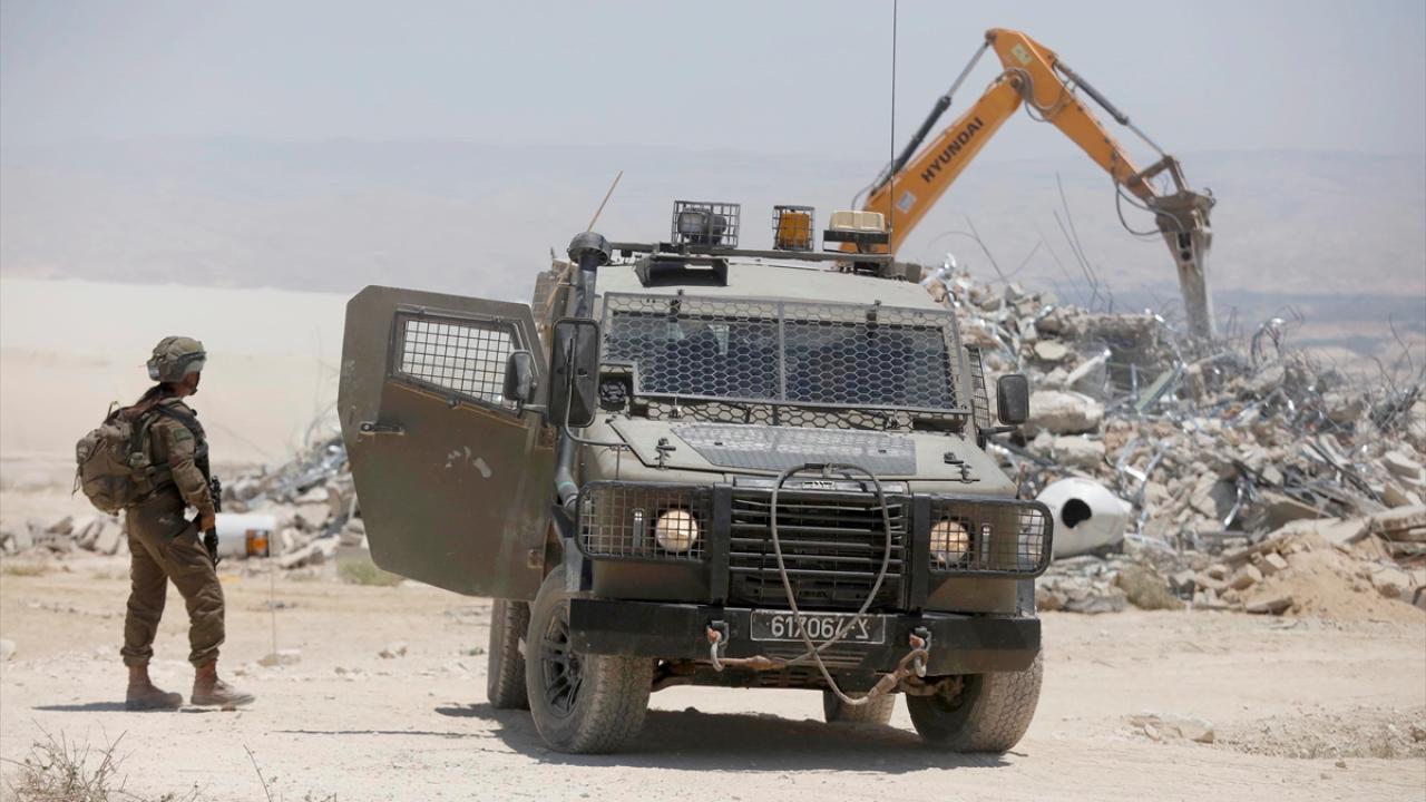 İsrail askerleri, Filistinlilere ait yapıları "ruhsatsız olduğunu" gerekçe göstererek yıkmaya başladı.