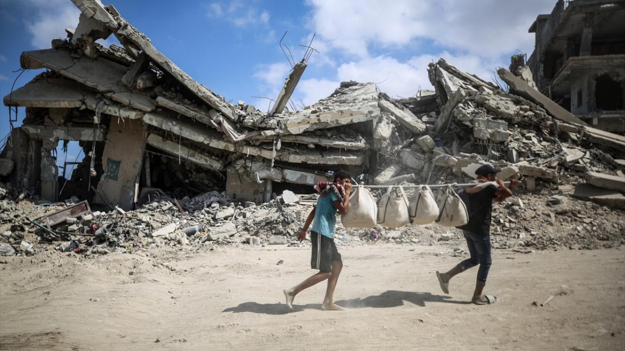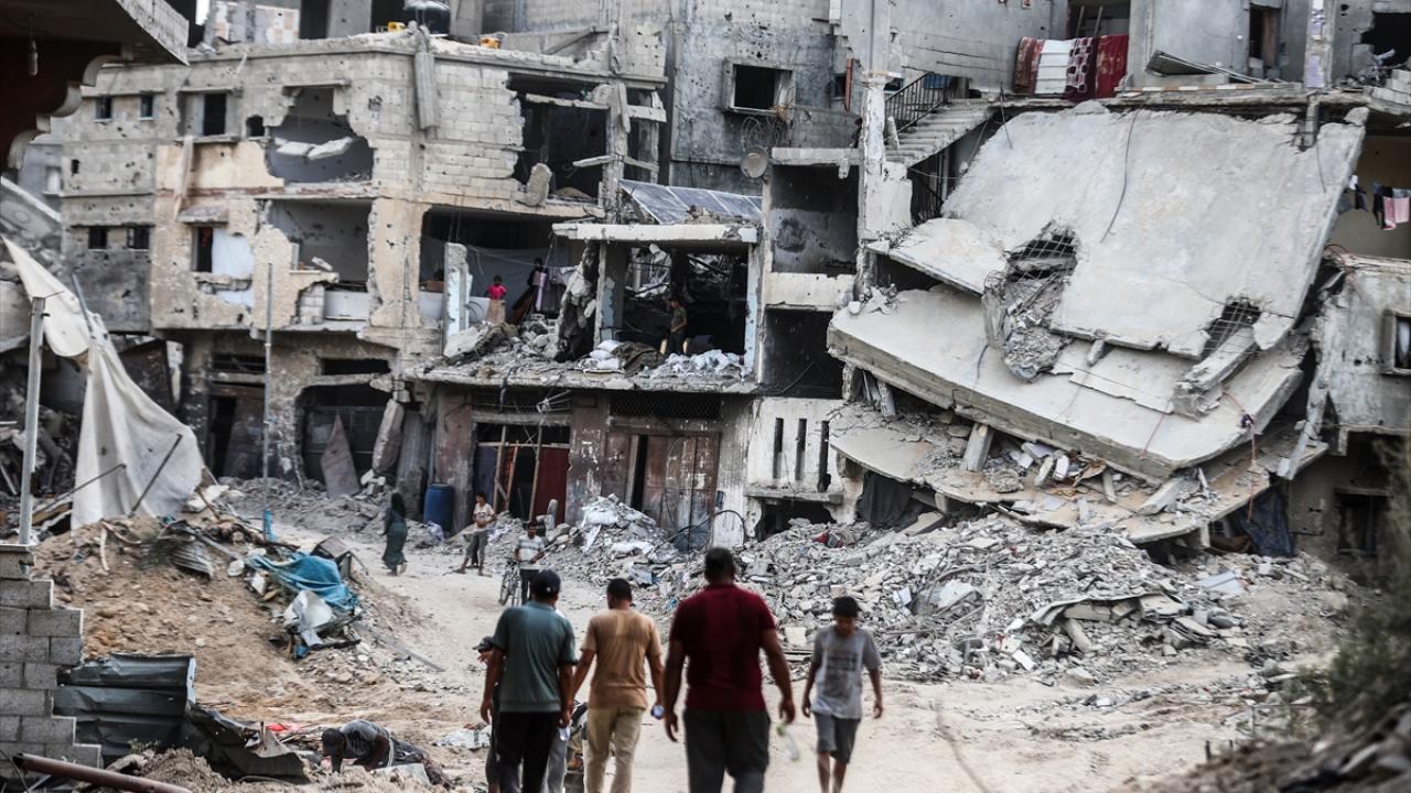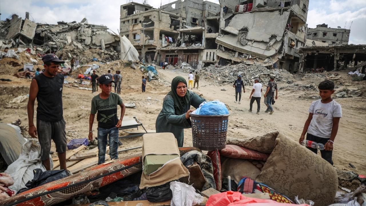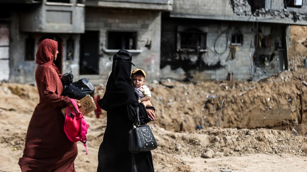 İsrail ordusunun 22 Temmuz`da başlattığı saldırılar nedeniyle kenti terk eden yüzlerce Filistinli, sabahın erken saatlerinden itibaren Han Yunus`un doğusundaki evlerine dönmeye başladı.