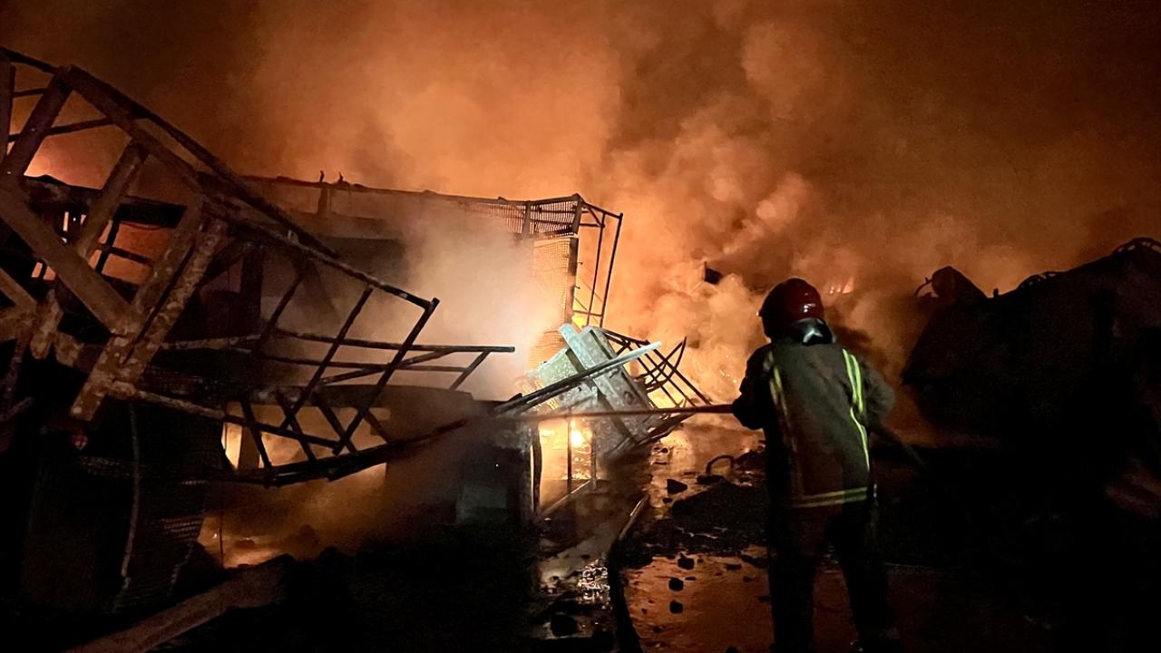 Sivil savunma ekipleri çıkan yangına müdahale etti.