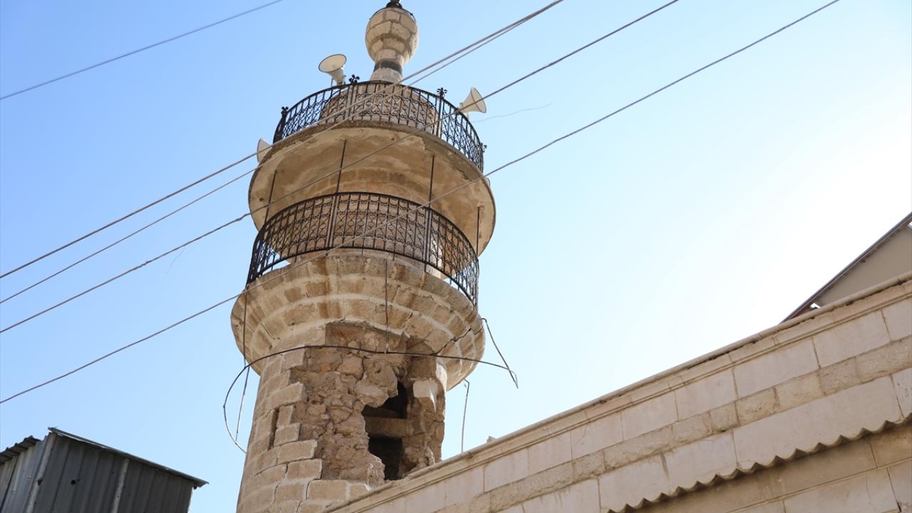 AA muhabirleri, İsrail güçlerinin geride bıraktığı askeri araç ile saldırı sonucu zarar gören caminin minaresini ve yıkılan evleri görüntüledi.