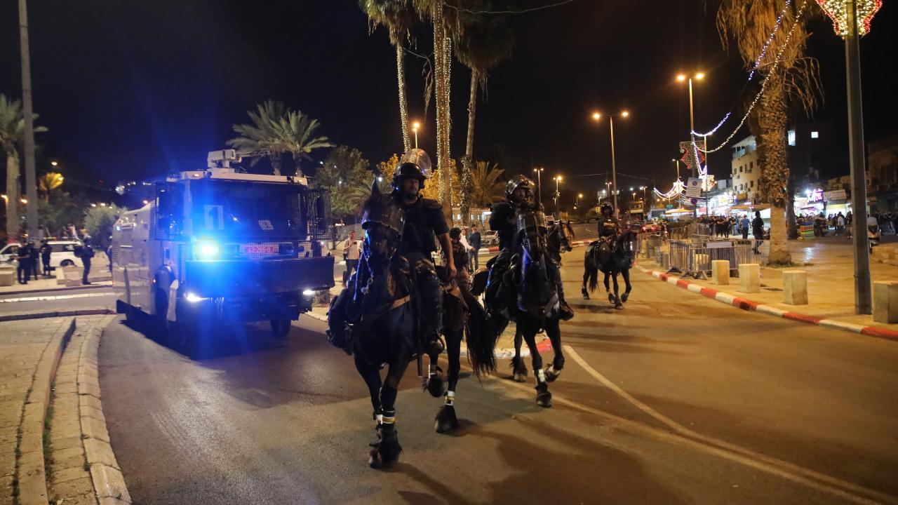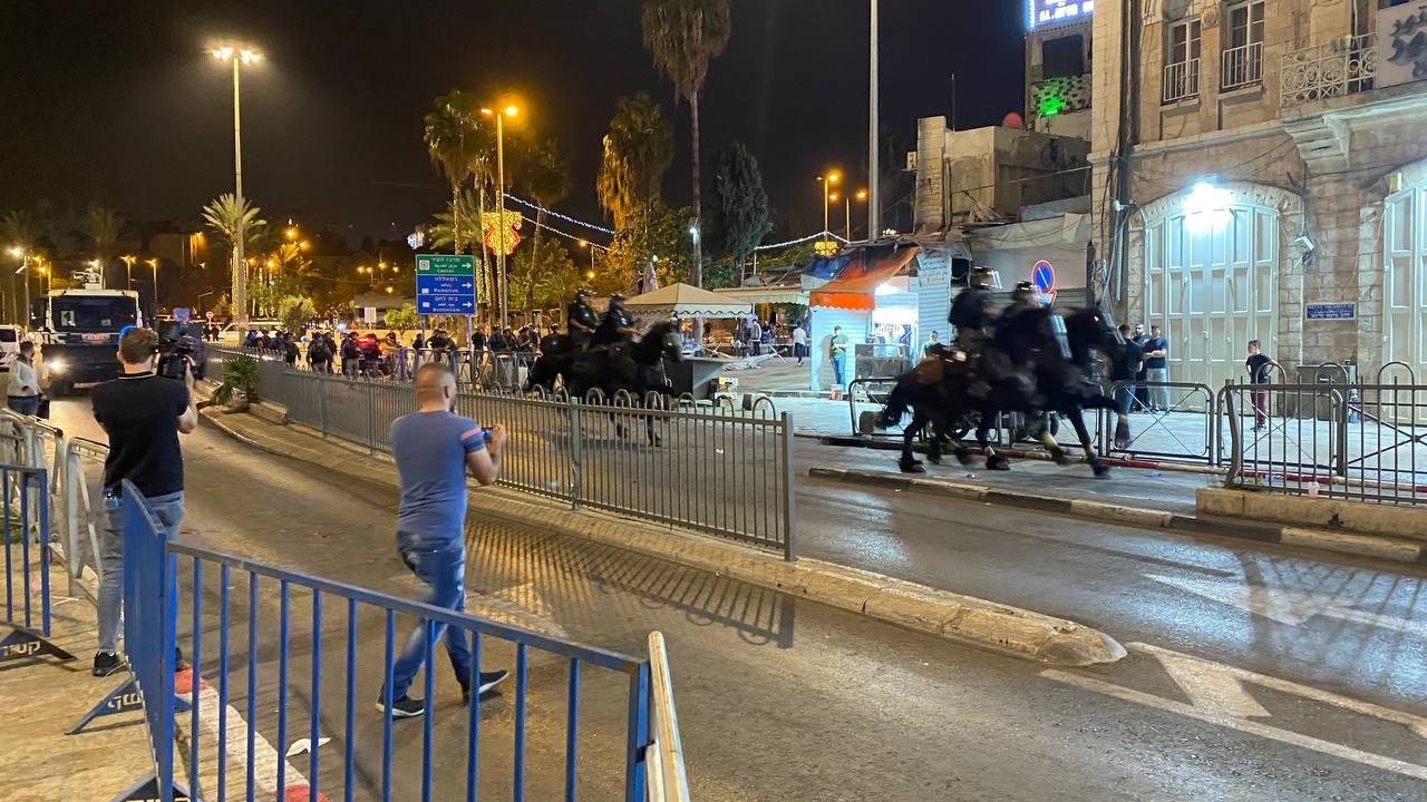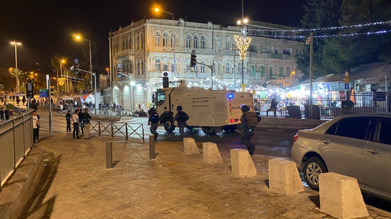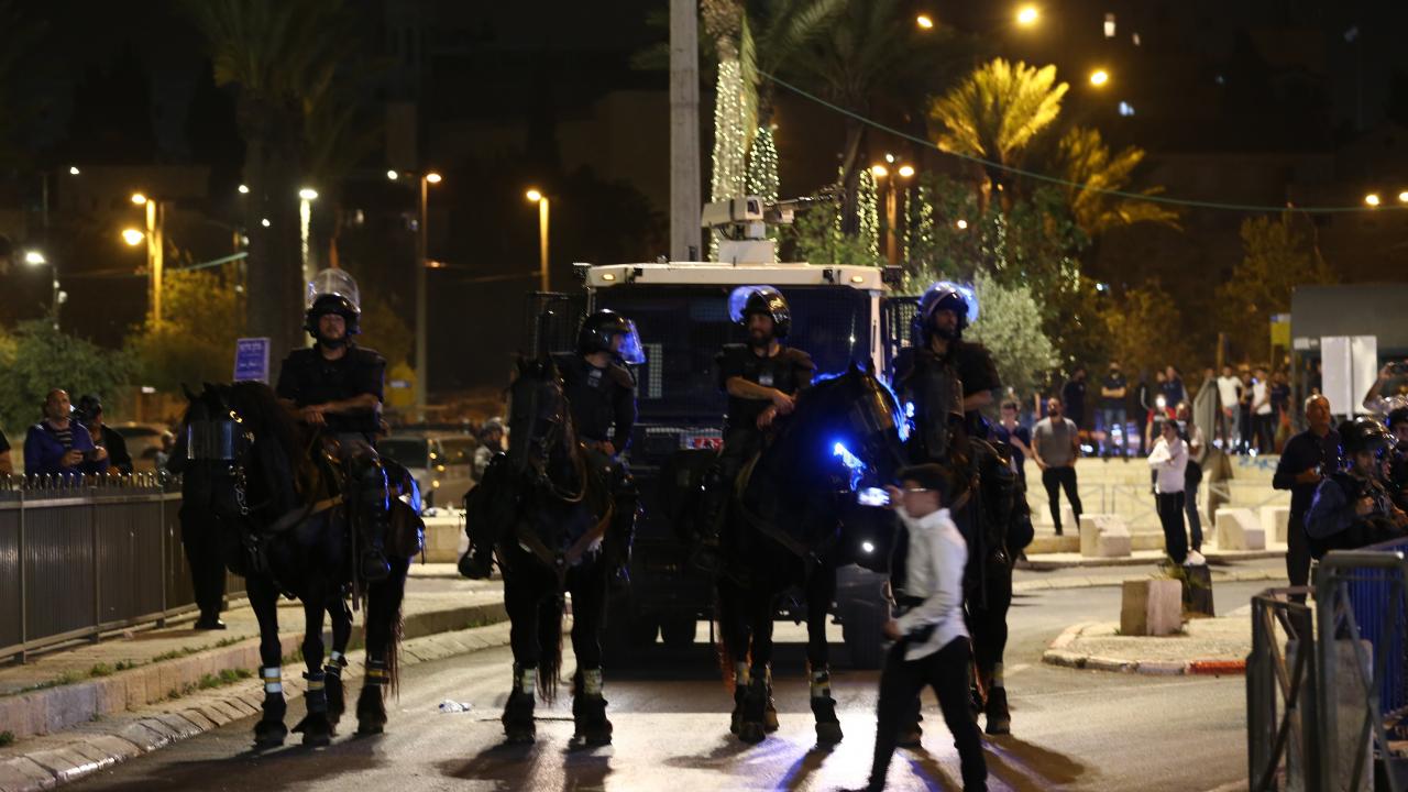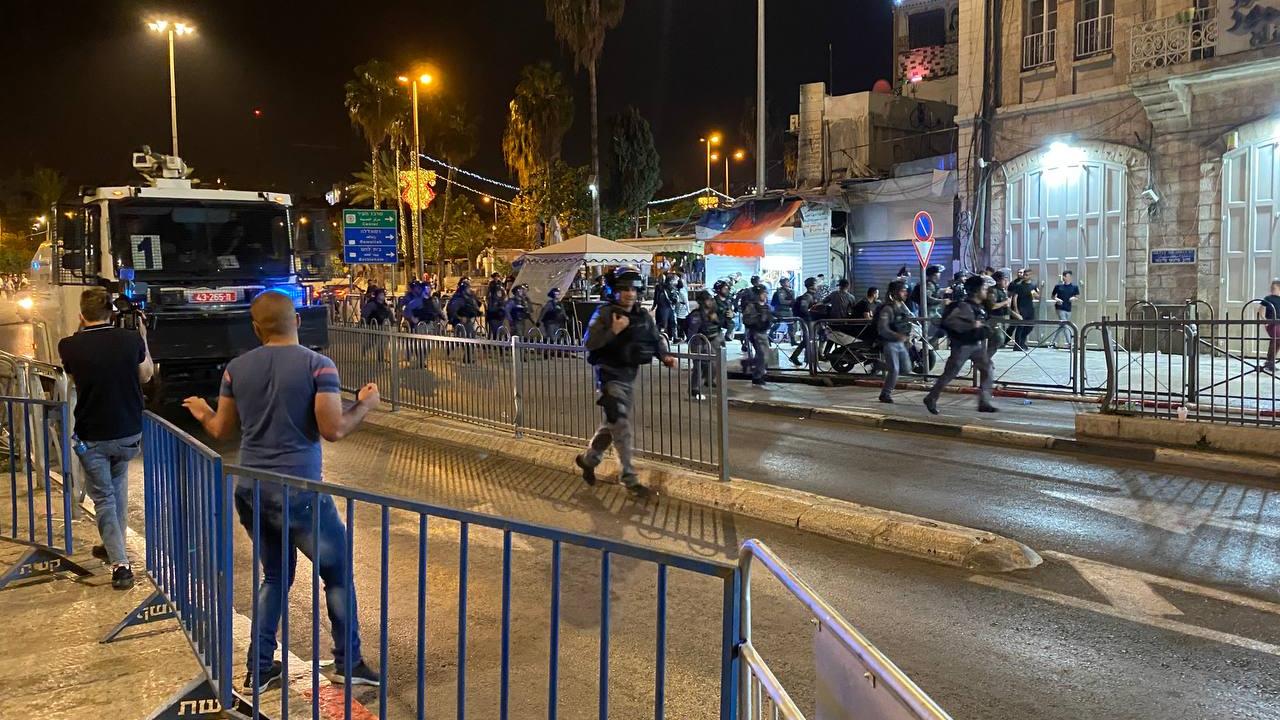 Gerginliğin artması üzerine İsrail polisi, Filistinli gençleri dağıtmak için bir TOMA ve atlı polisleri devreye soktu.