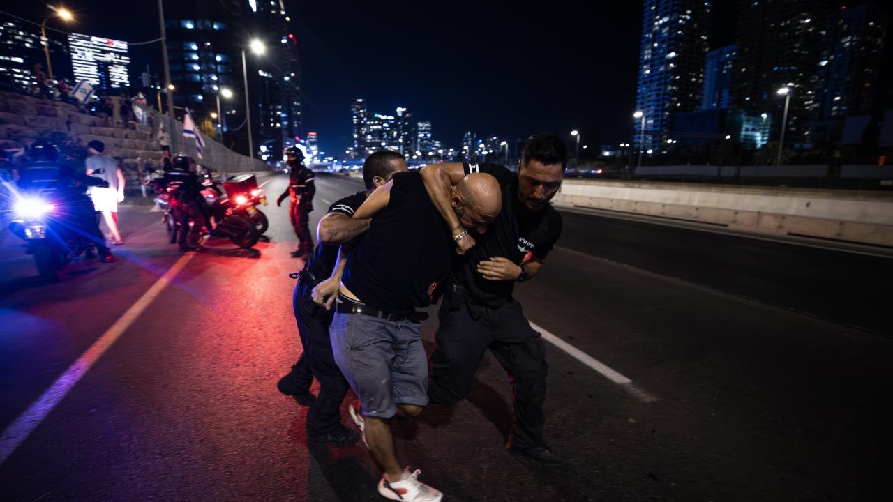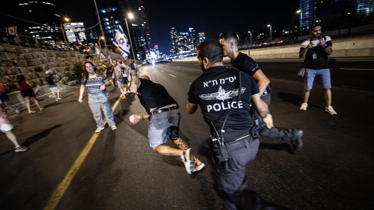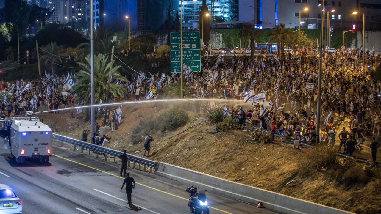 Yaklaşık bin kişilik gösterici grubu Tel Aviv`in ana arteri Ayalon Otoyolu`nu kapattı, yolda ateş yaktı. İsrail polisi, göstericileri TOMA, atlı birlikler ve güç kullanarak uzaklaştırdı.