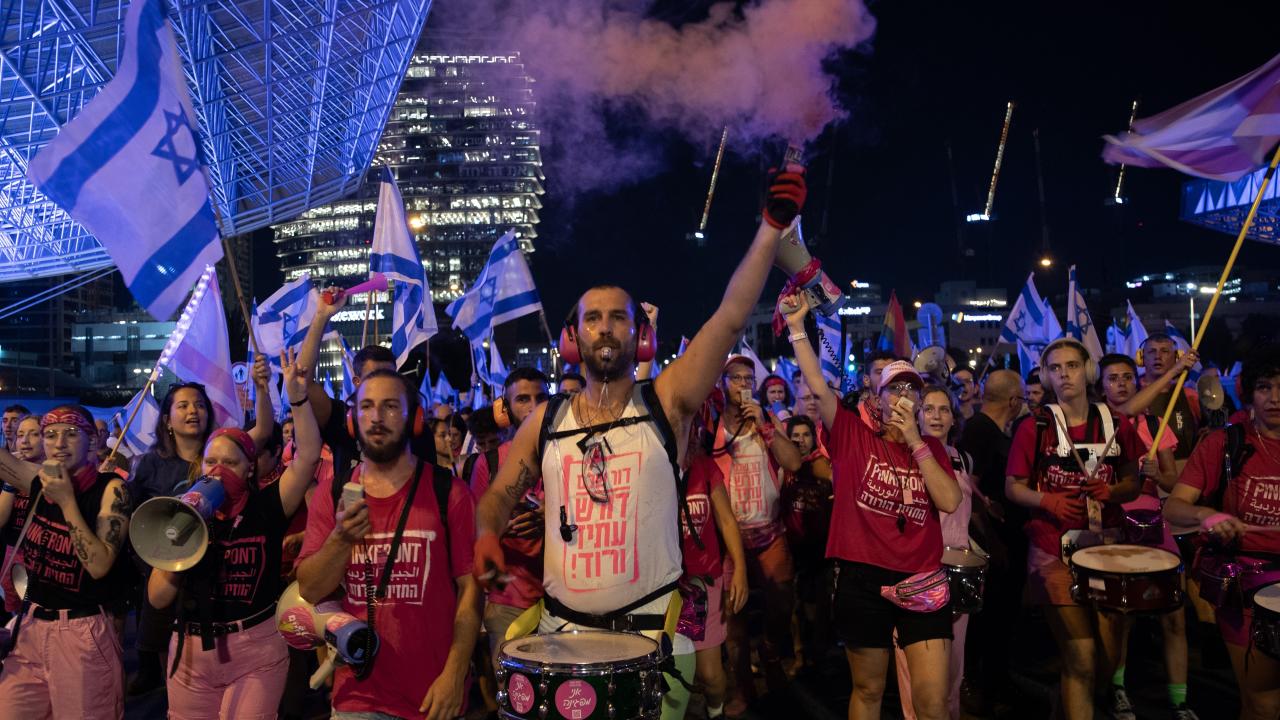 Göstericiler, akşam saatlerinde yargı düzenlemesi karşıtı protestoların sembolü haline gelen Tel Aviv`deki Kaplan Caddesi`ndeki Hükümet Kompleksi`nin önünde toplandı.