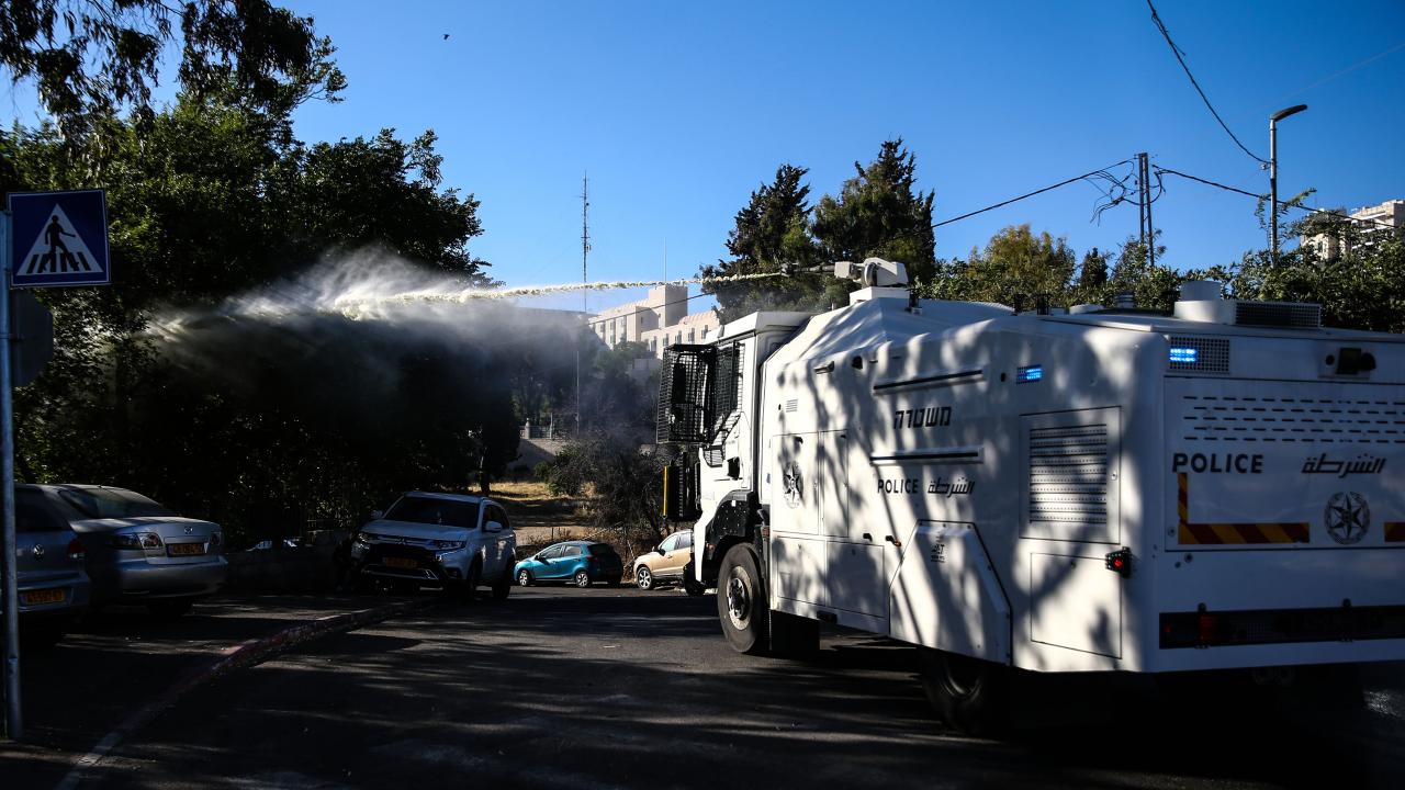 Filistinlilerin Şeyh Cerrah’ta tehcir tehdidiyle karşı karşıya olan evlerin önüne geçmesine izin vermeyen İsrail polisi, göstericilere ses bombaları ile müdahale etti, toplumsal olaylara müdahale aracından (TOMA) tazyikli kirli su sıktı.