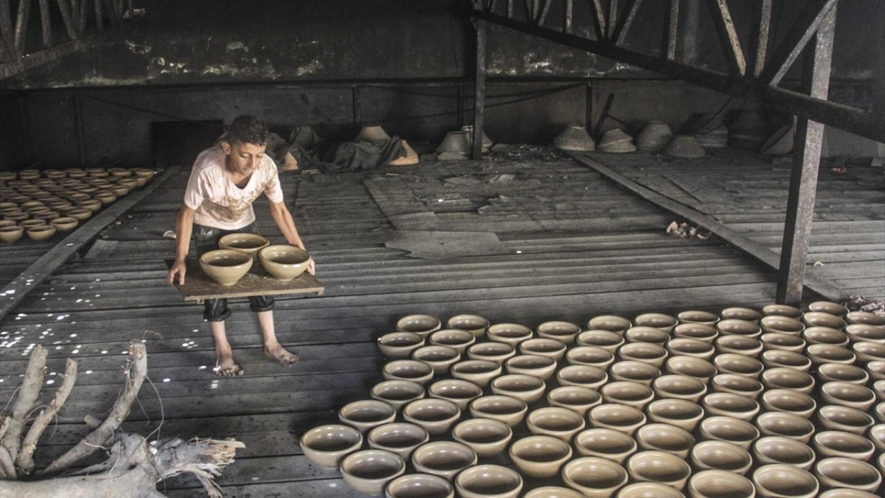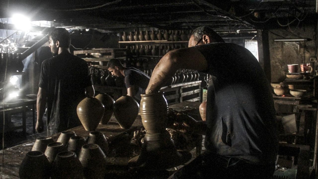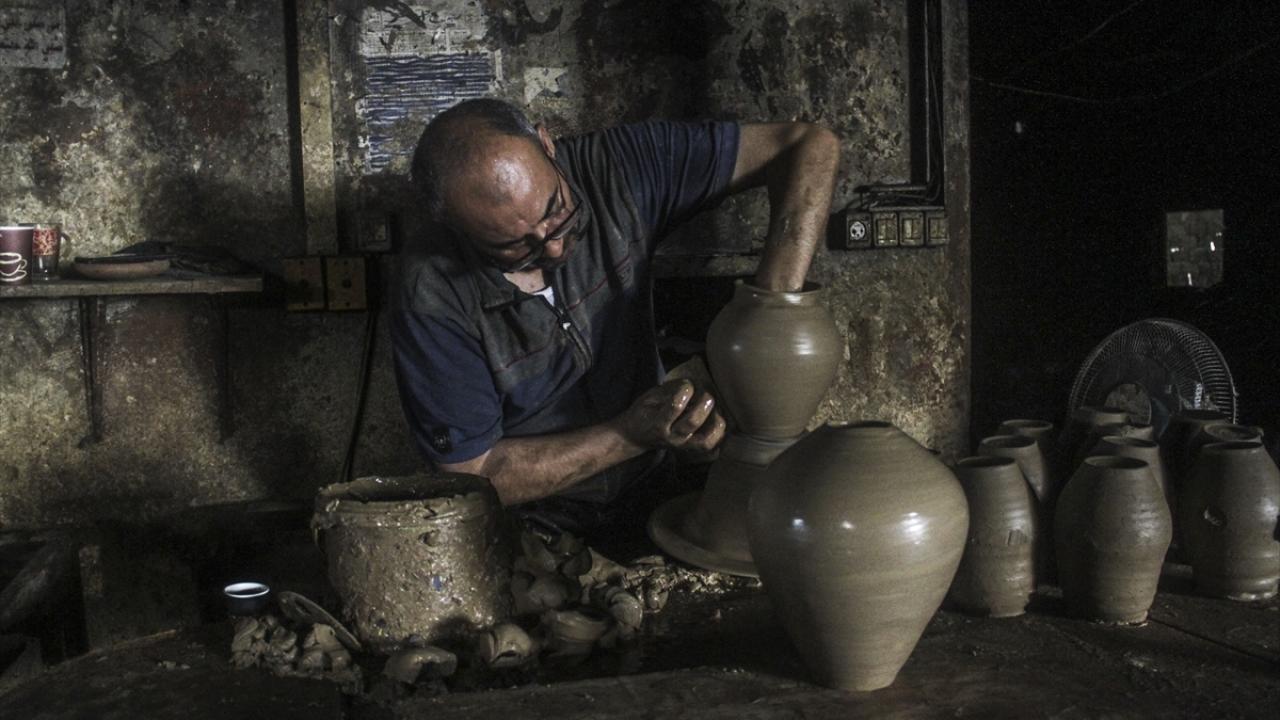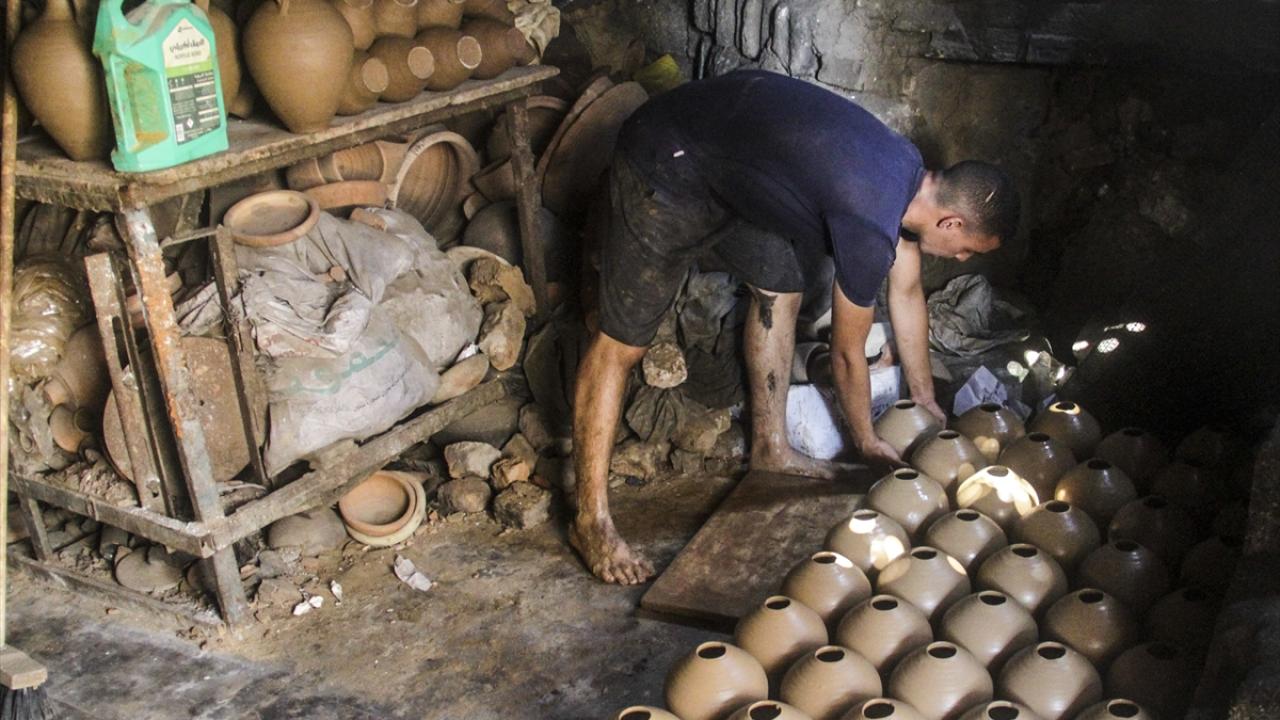 Gazze`de Filistinli bir adam, çömlek fabrikasında çömlek yaparak Filistinlilerin kullanımına sunuyor.