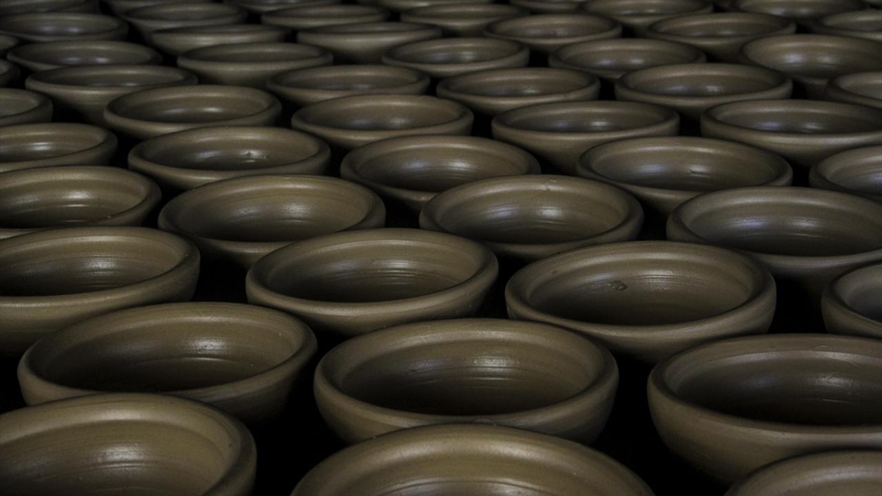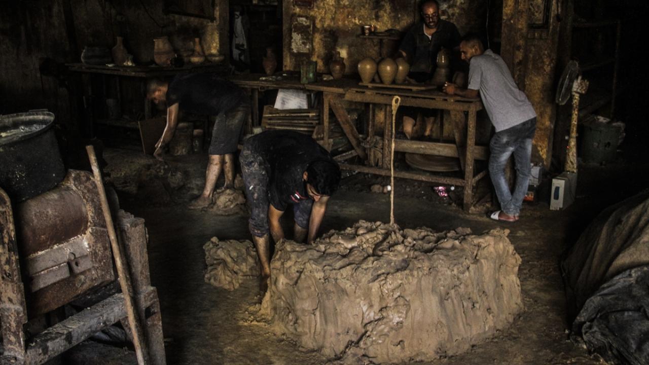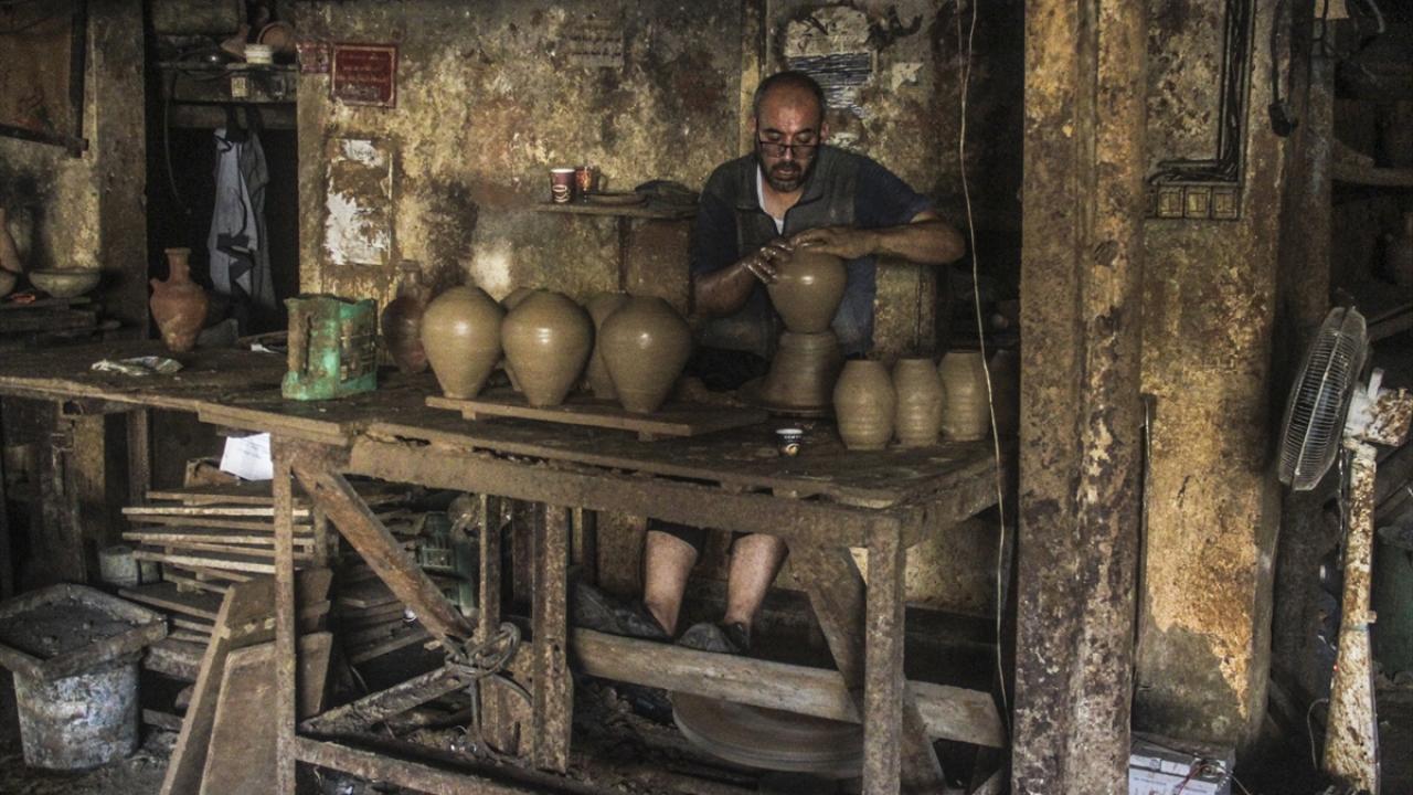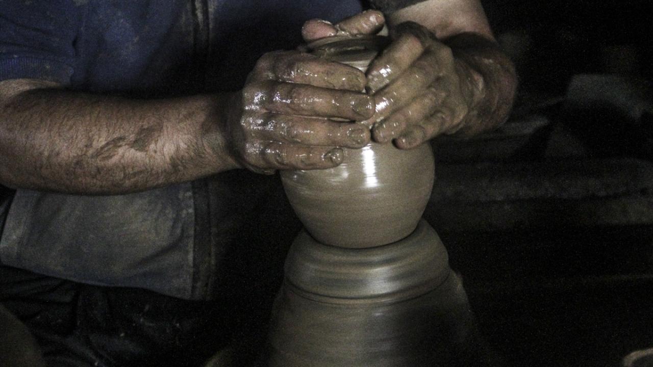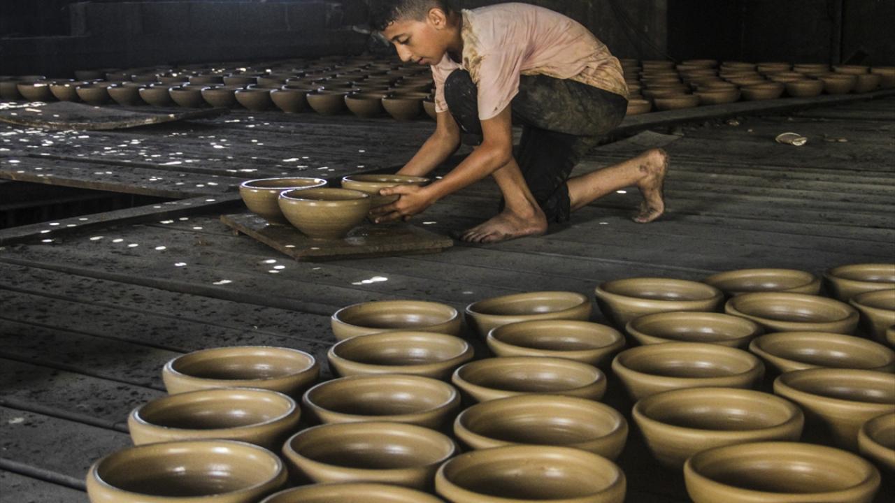 Gazze`de Filistinli bir adam, çömlek fabrikasında çömlek yaparak Filistinlilerin kullanımına sunuyor.