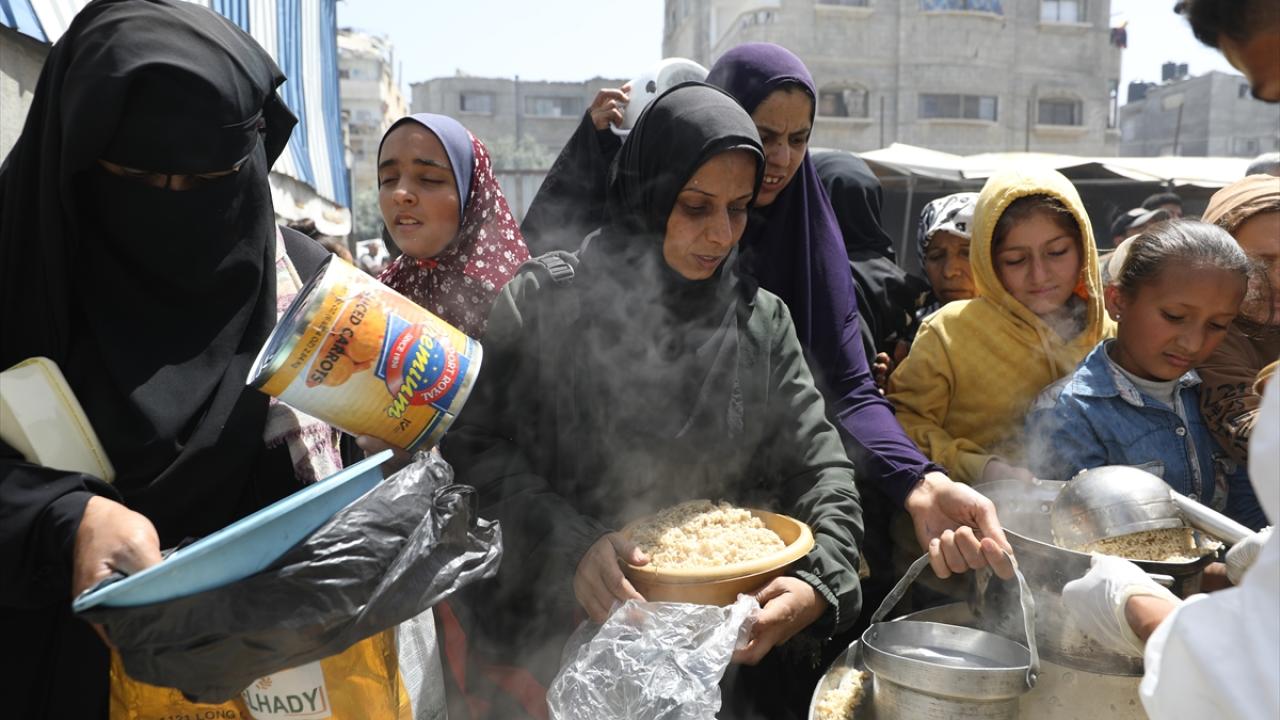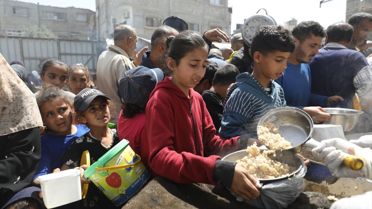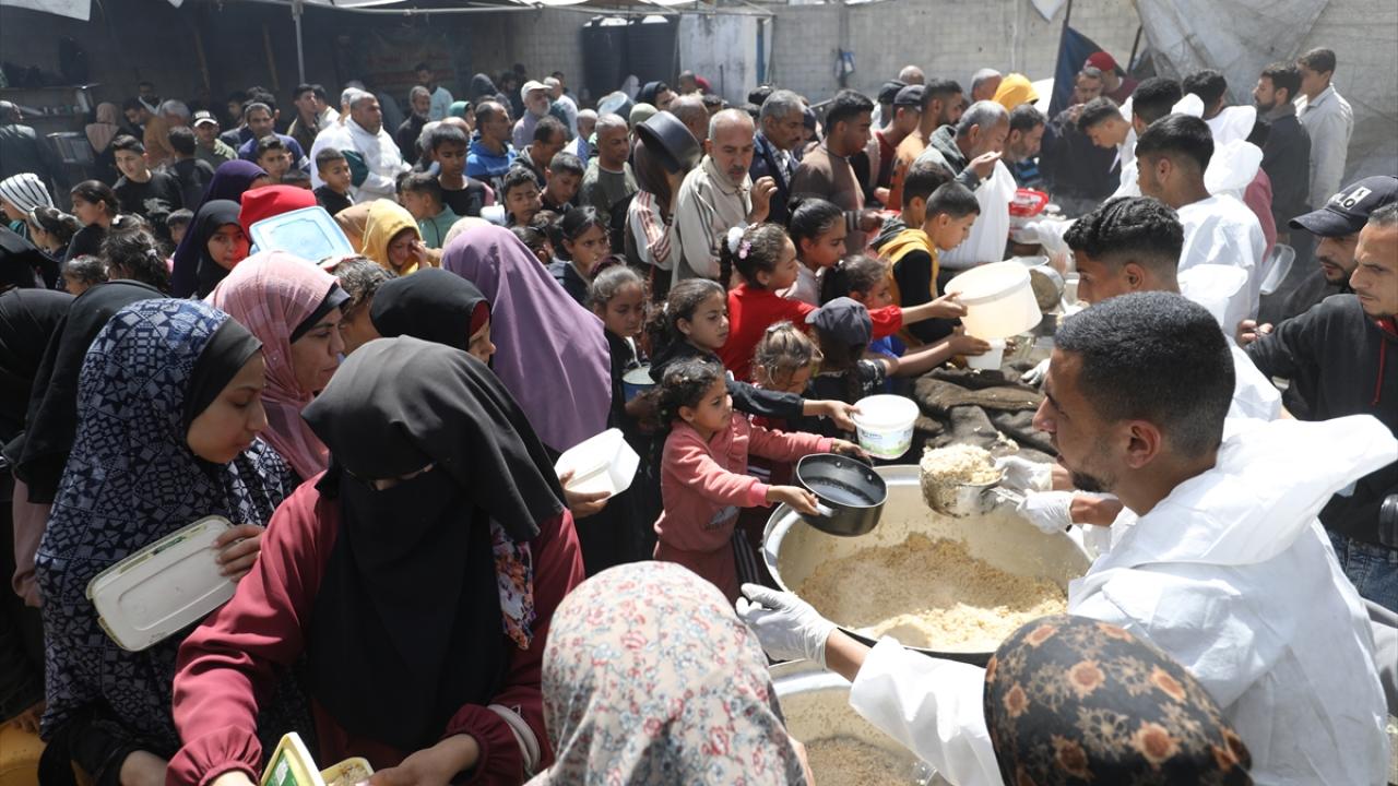 İsrail'in 2 Mart'tan bu yana sınır kapılarını insani yardım girişine tamamen kapattığı ve saldırılarını sürdürdüğü Gazze Şeridi'nde, gıda krizi giderek derinleşiyor. Bir hayır kurumu, Gazze'nin orta kesiminde yer alan Nuseyrat Mülteci Kampı'ndaki Filistinlilere, sıcak yemek dağıtımı yaptı.