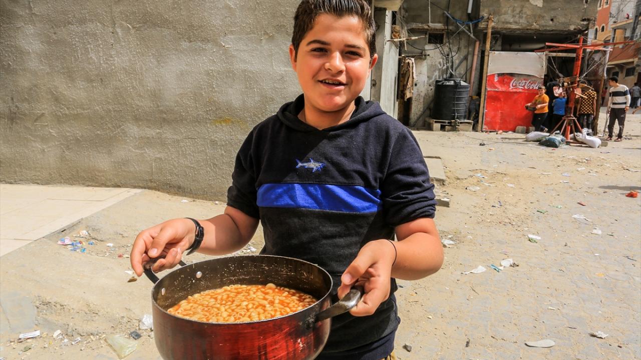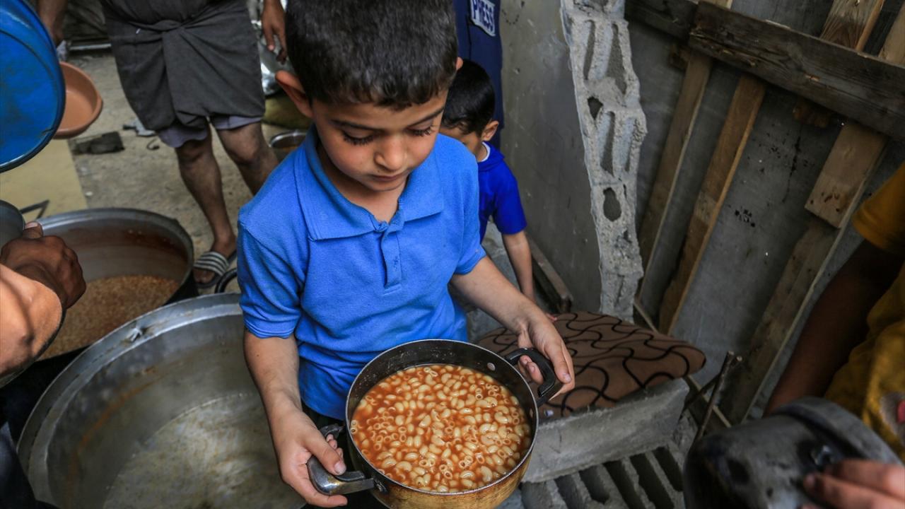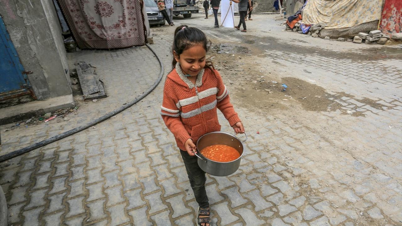 İsrail saldırıları altındaki Gazze'de Filistinlilere sıcak yemek dağıtıldı