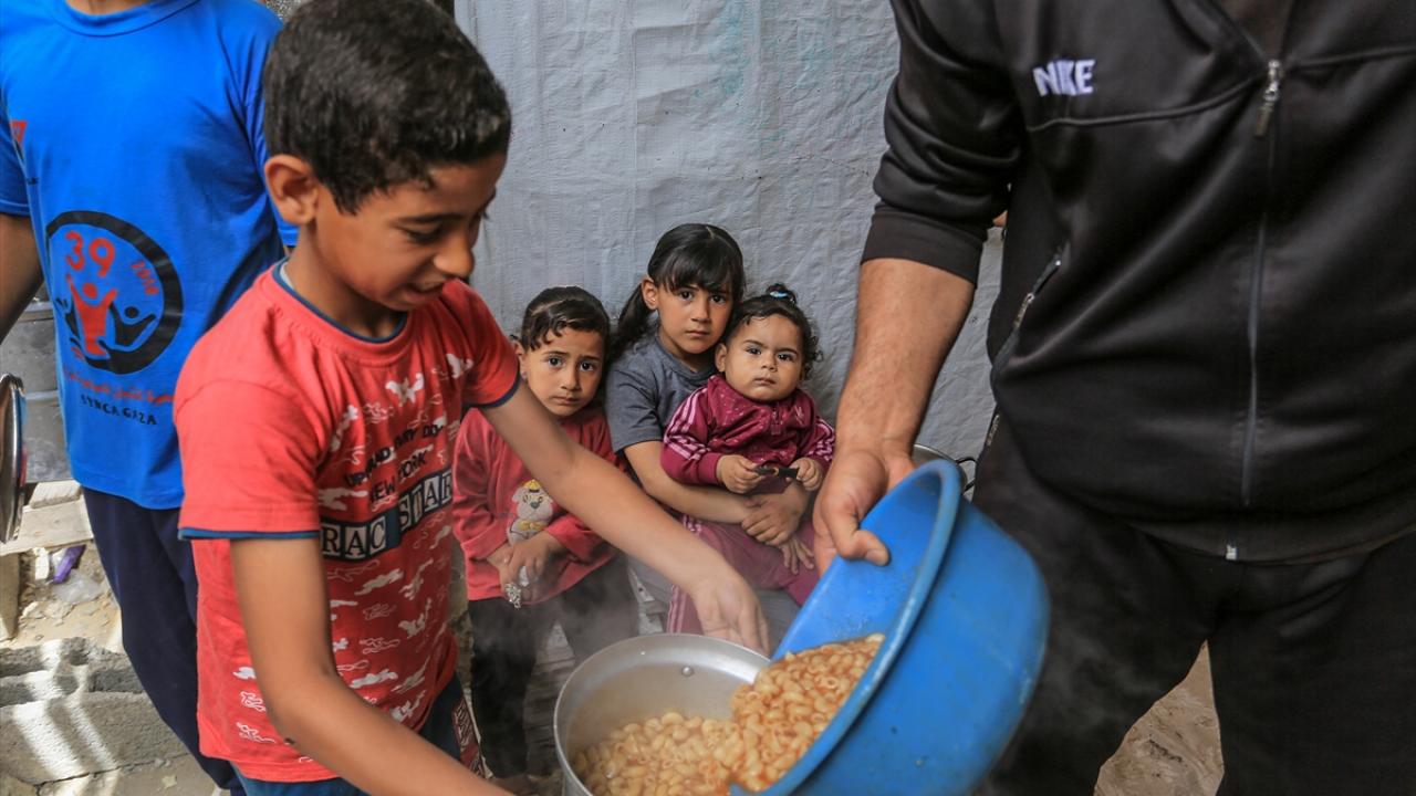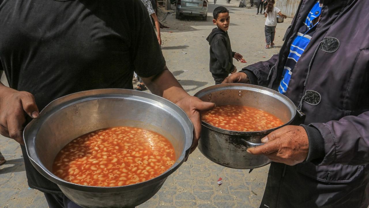 Bir hayır kurumu tarafından Gazze`nin Han Yunus kentindeki Filistinlilere, sıcak yemek dağıtımı yaptı.