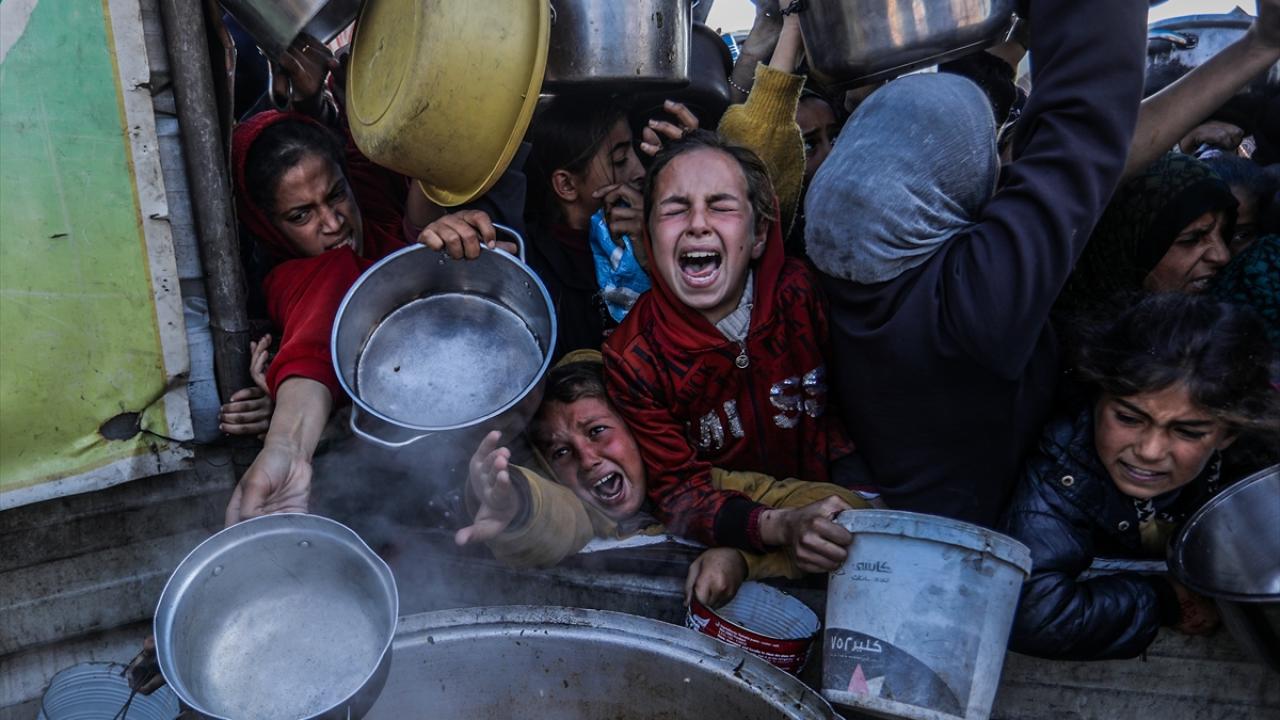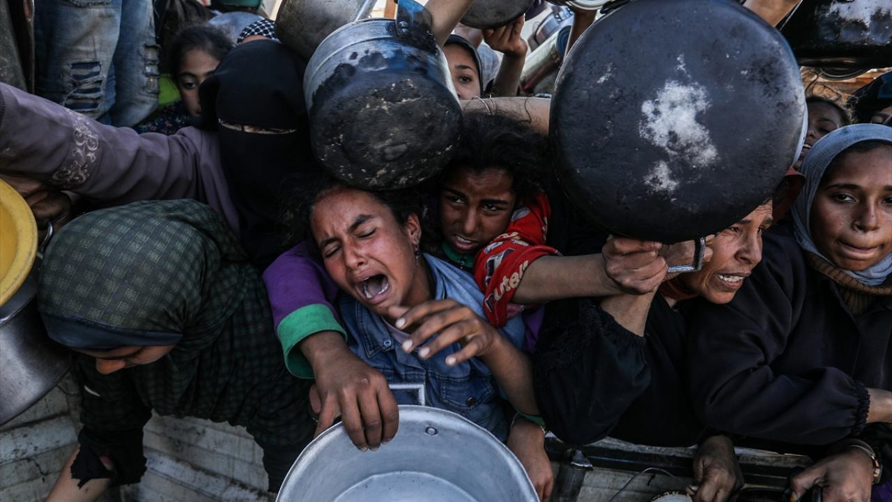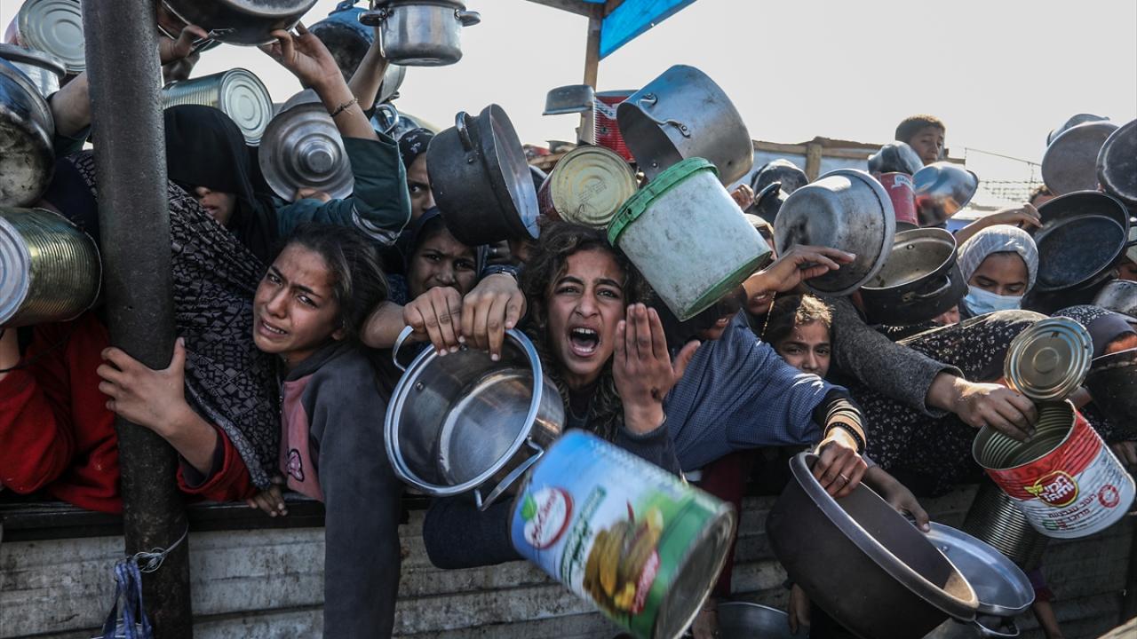 Açlıkla mücadele eden Filistinliler, dağıtım sırasında yoğunluk oluşturdu.