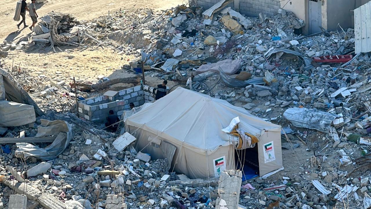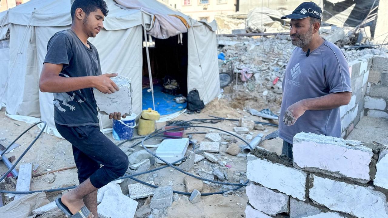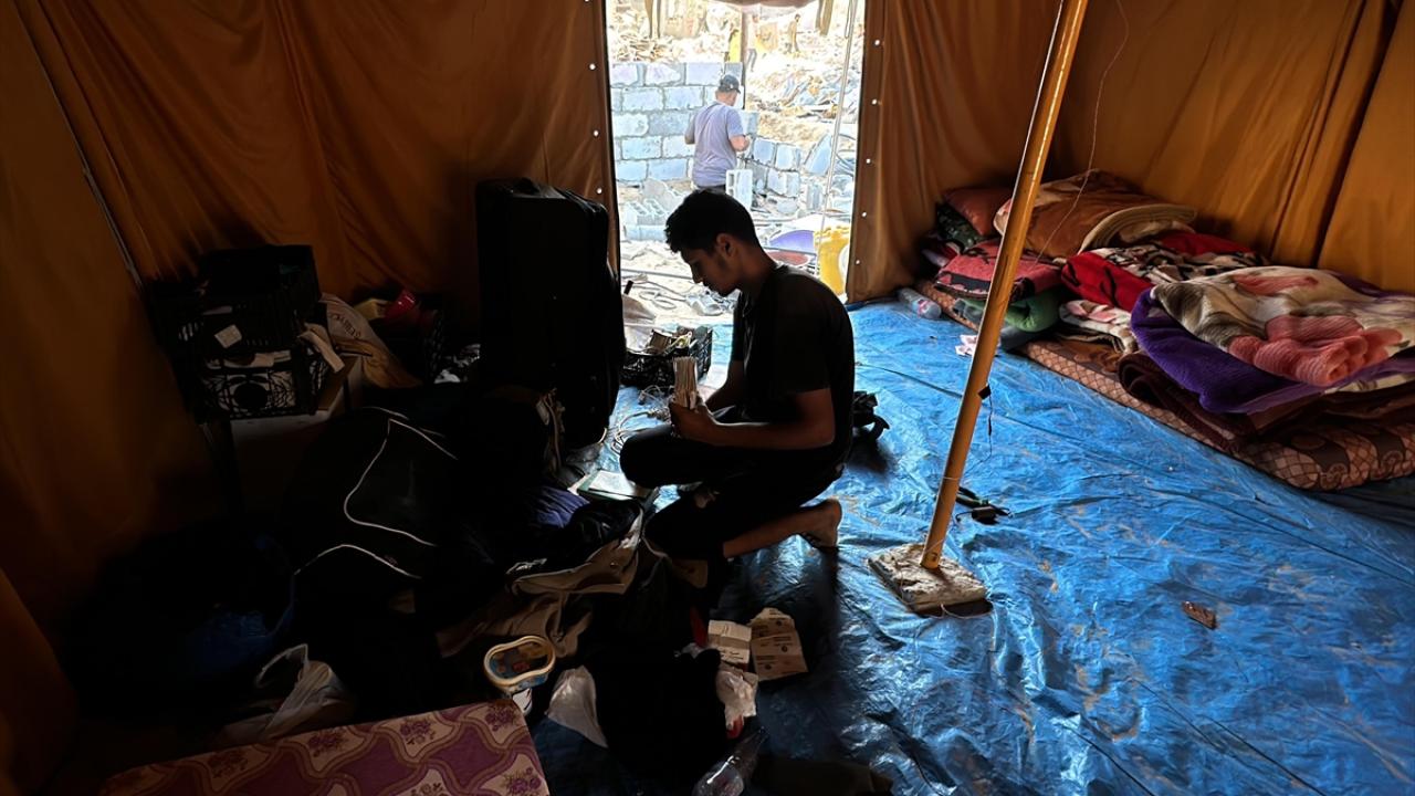 İsrail ordusunun Gazze'nin Han Yunus kentine düzenlediği saldırılarda evi yıkılan Filistinli Ali el Bobo, enkaza kurduğu çadırda yaşamını sürdürmeye çalışıyor.