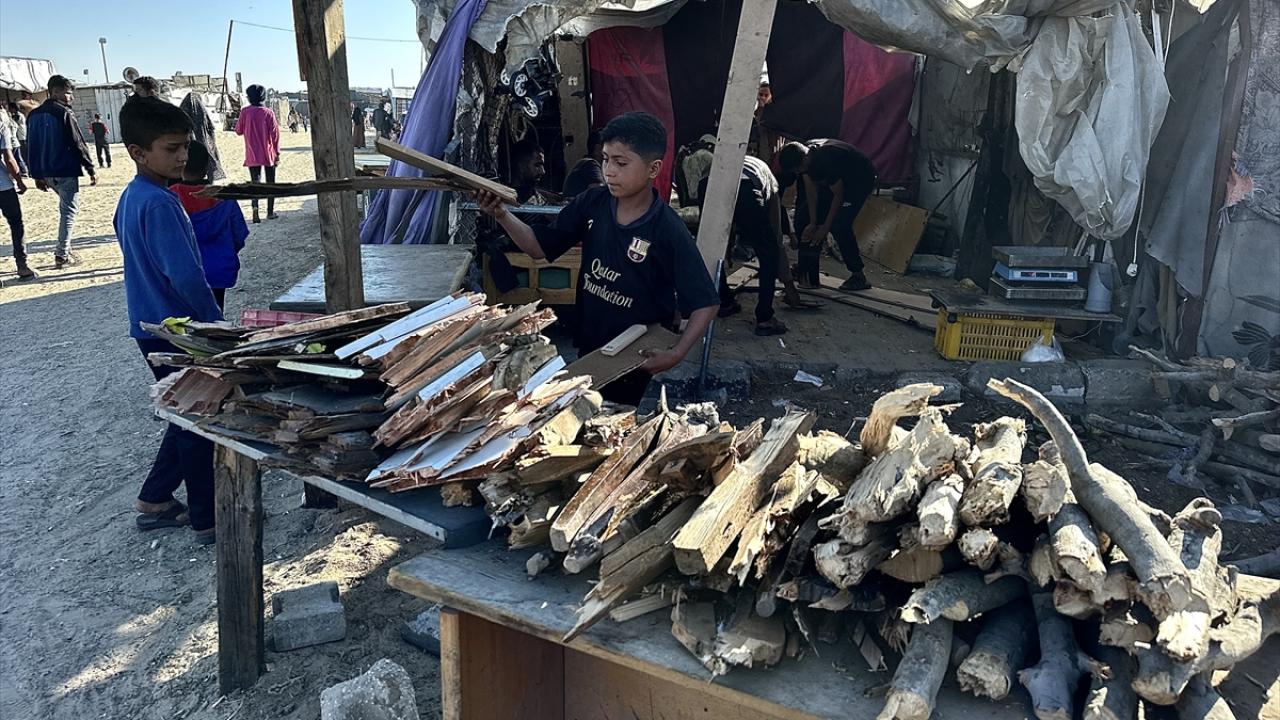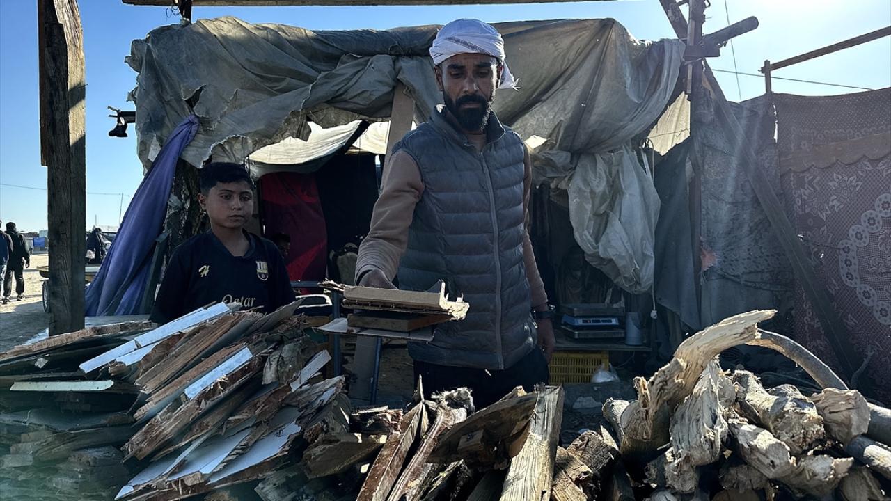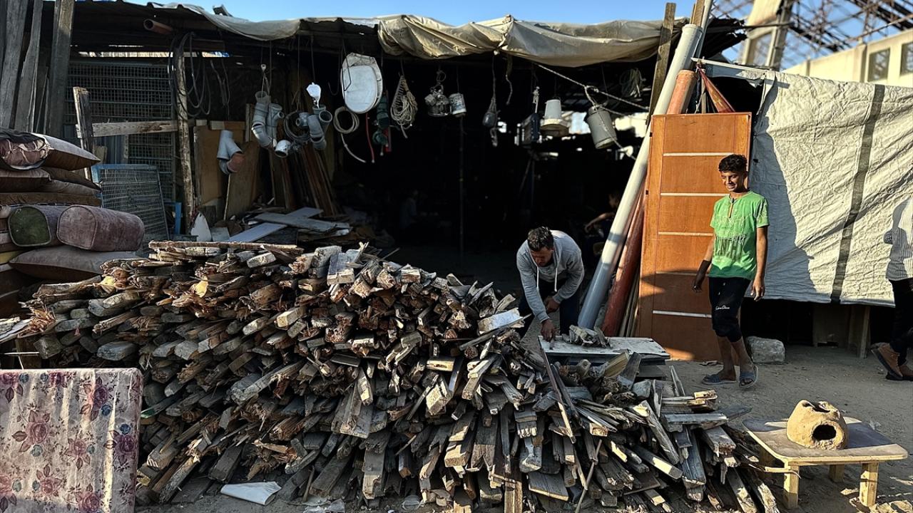 Han Yunus kentindeki Filistinliler, saldırılarda yıkılan evlerin enkazından çıkarılan tahtadan üretilen ev eşyalarını toplayarak "Gaz krizini" aşmaya çalışıyor.