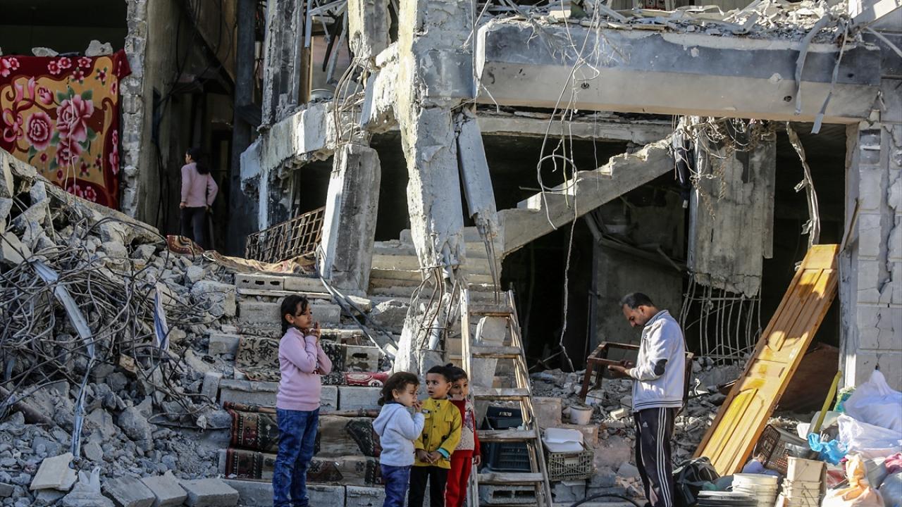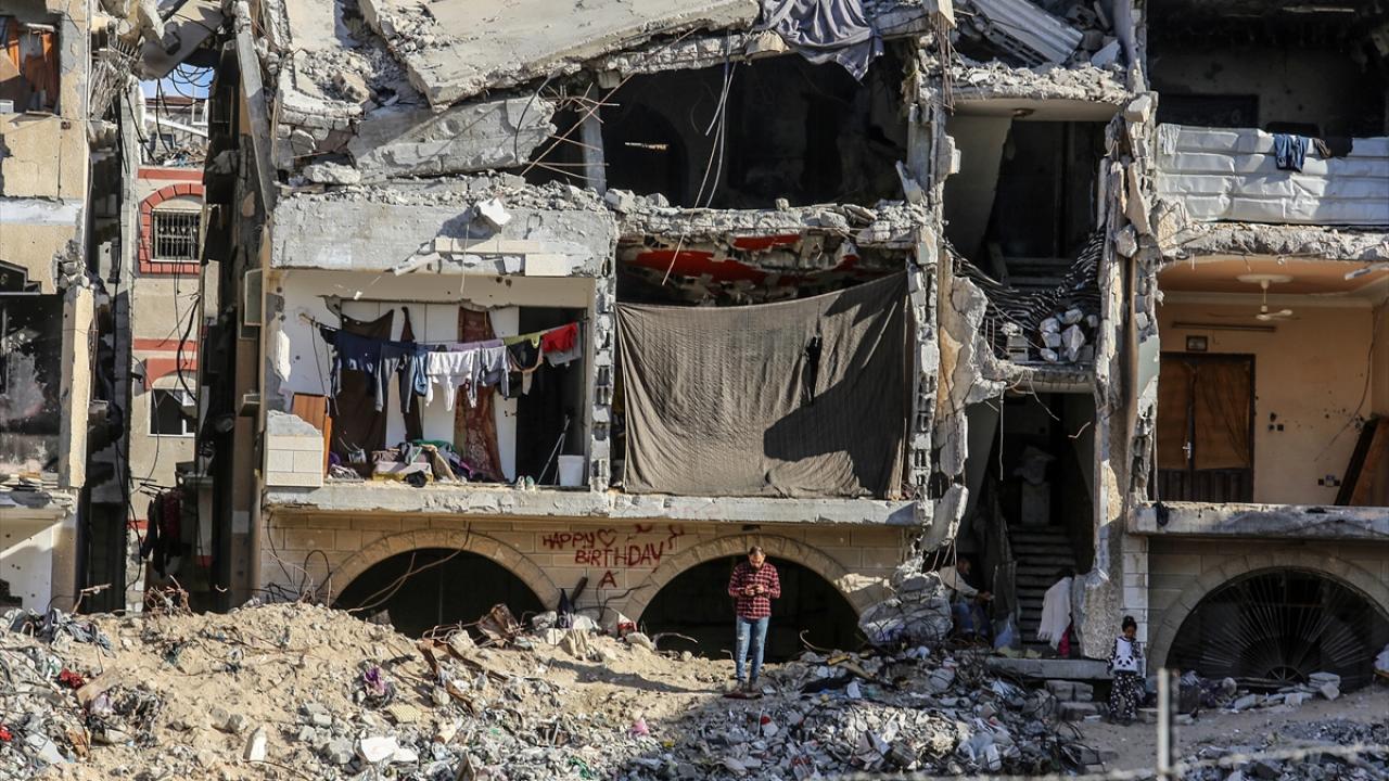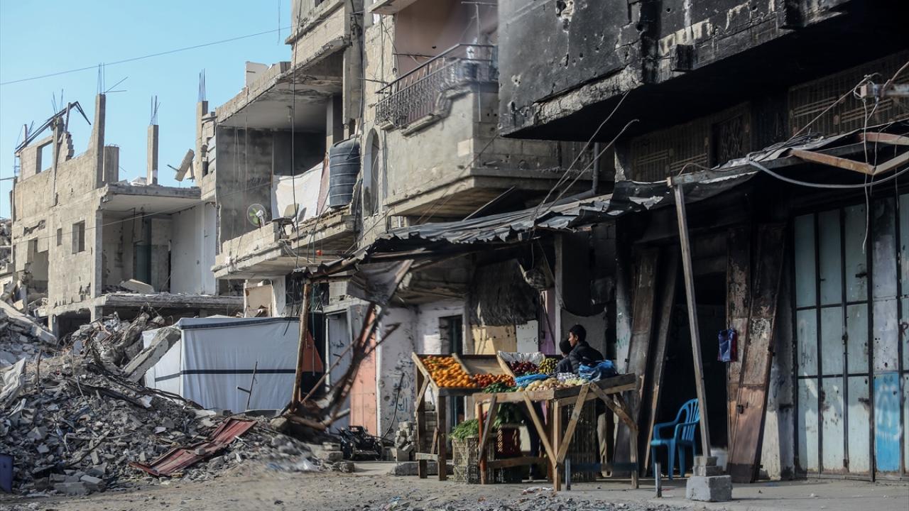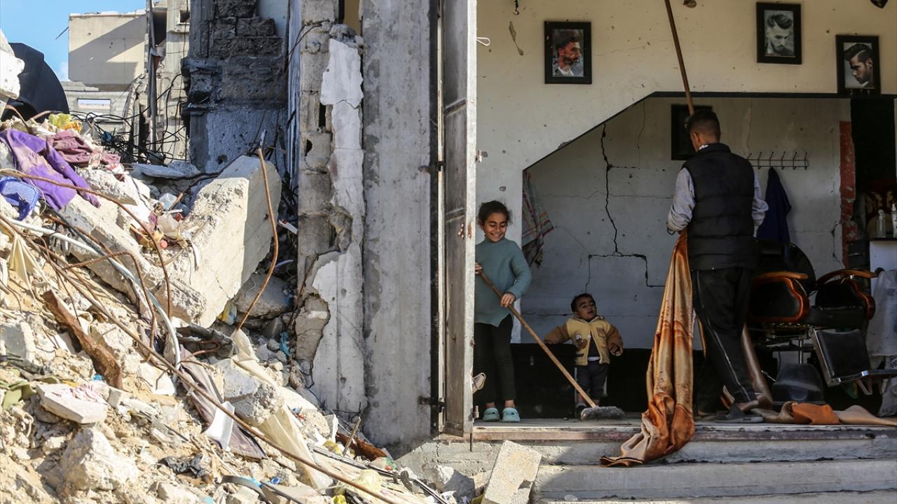 Gazze`nin güneyinde yer alan Han Yunus kentinde yaşayan Filistinliler, yıkık binalar arasında zor koşullara rağmen günlük hayatlarını sürdürmeye çalışıyor.