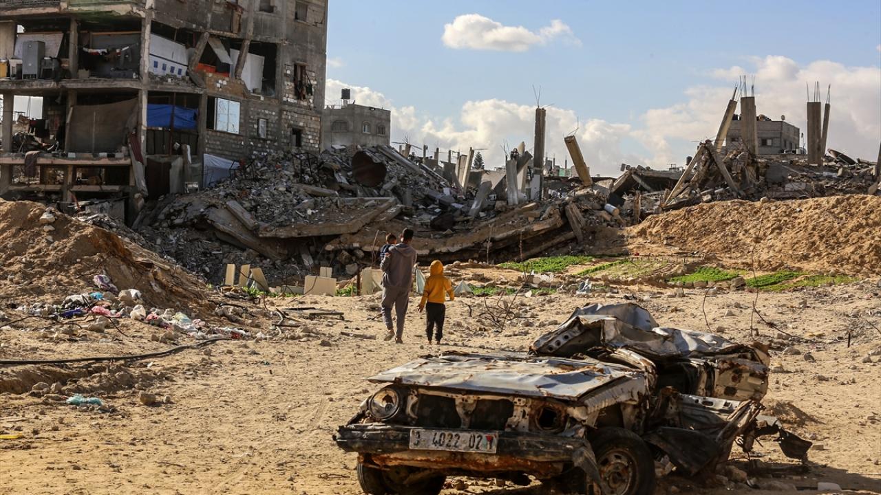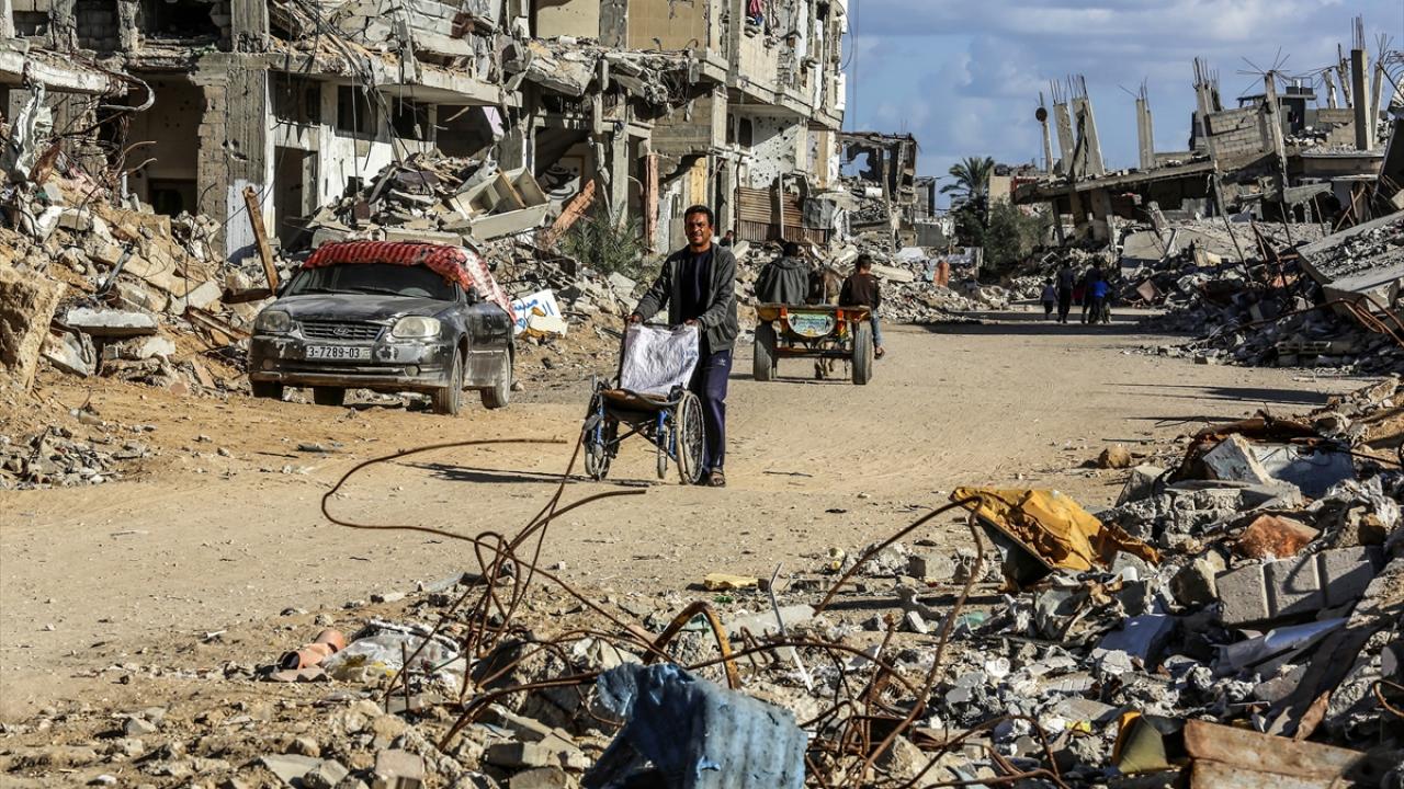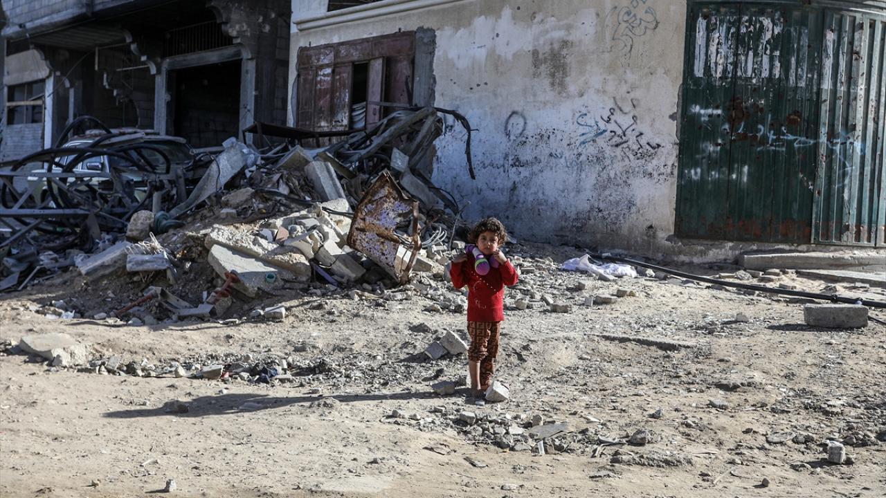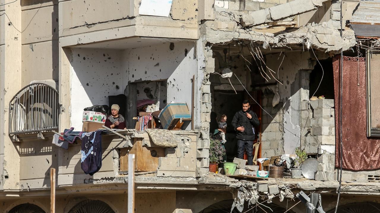 Gazze`nin güneyinde yer alan Han Yunus kentinde yaşayan Filistinliler, yıkık binalar arasında zor koşullara rağmen günlük hayatlarını sürdürmeye çalışıyor.