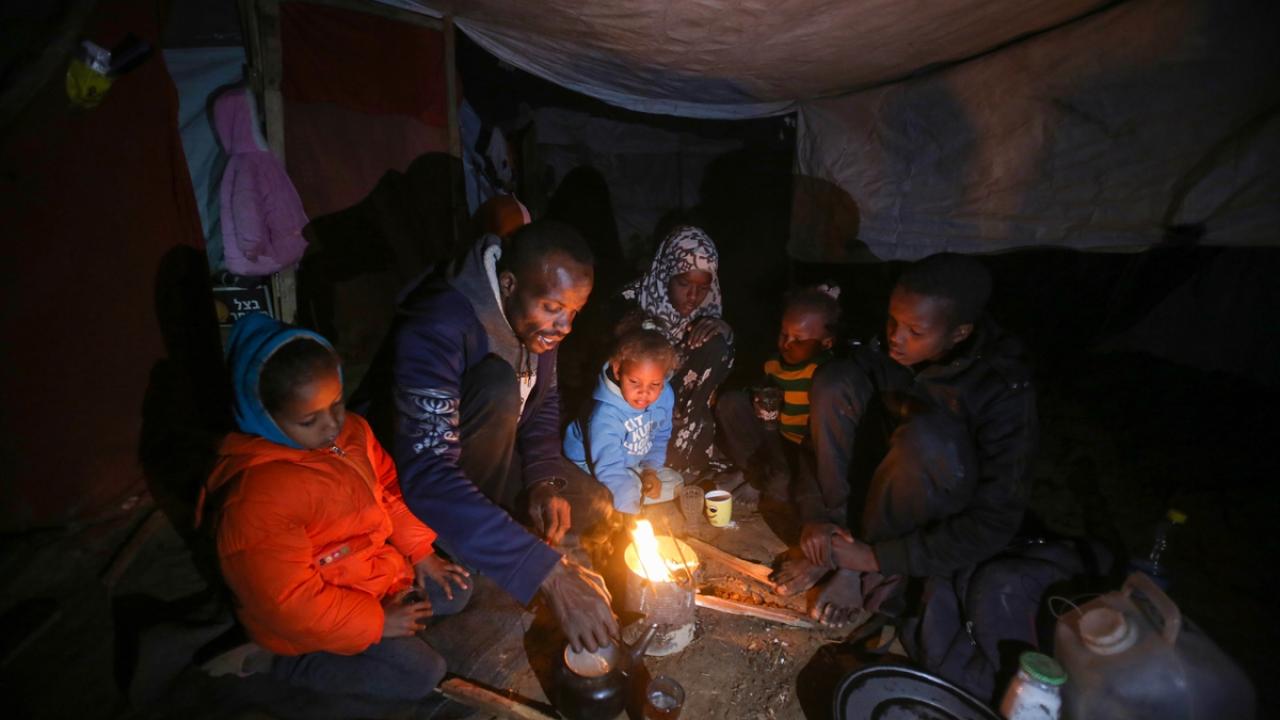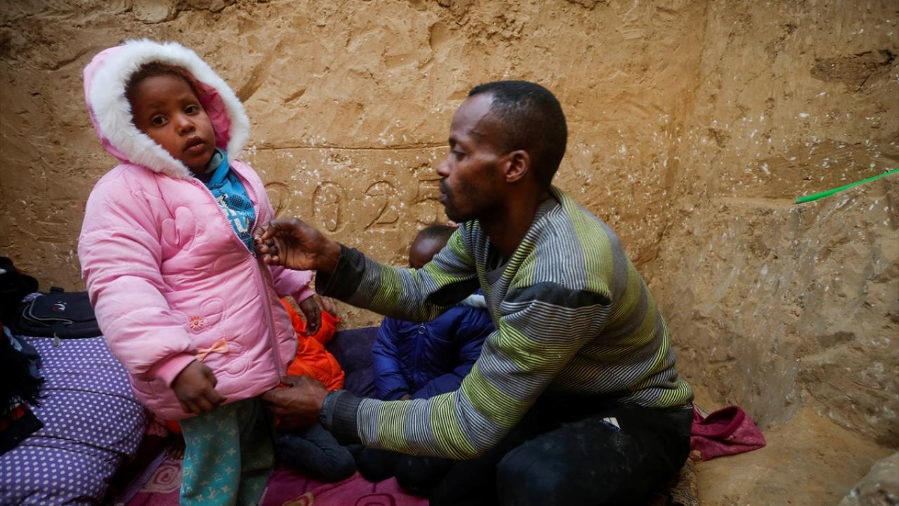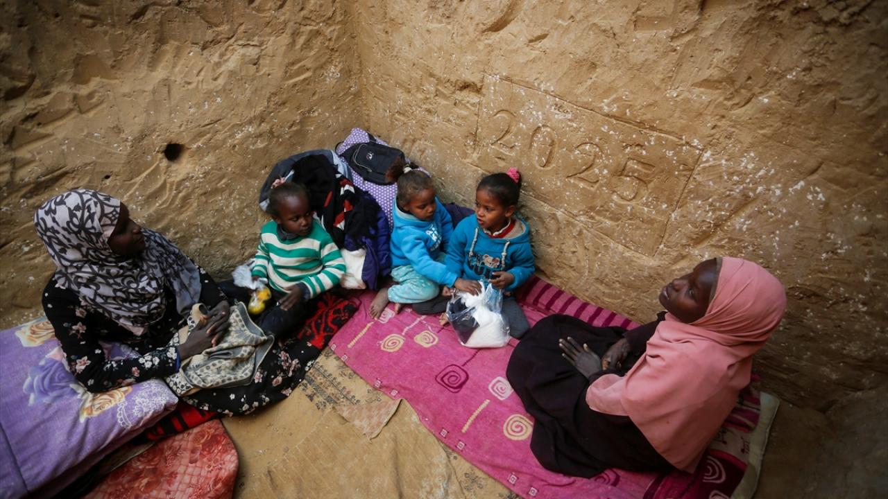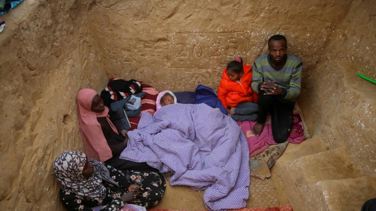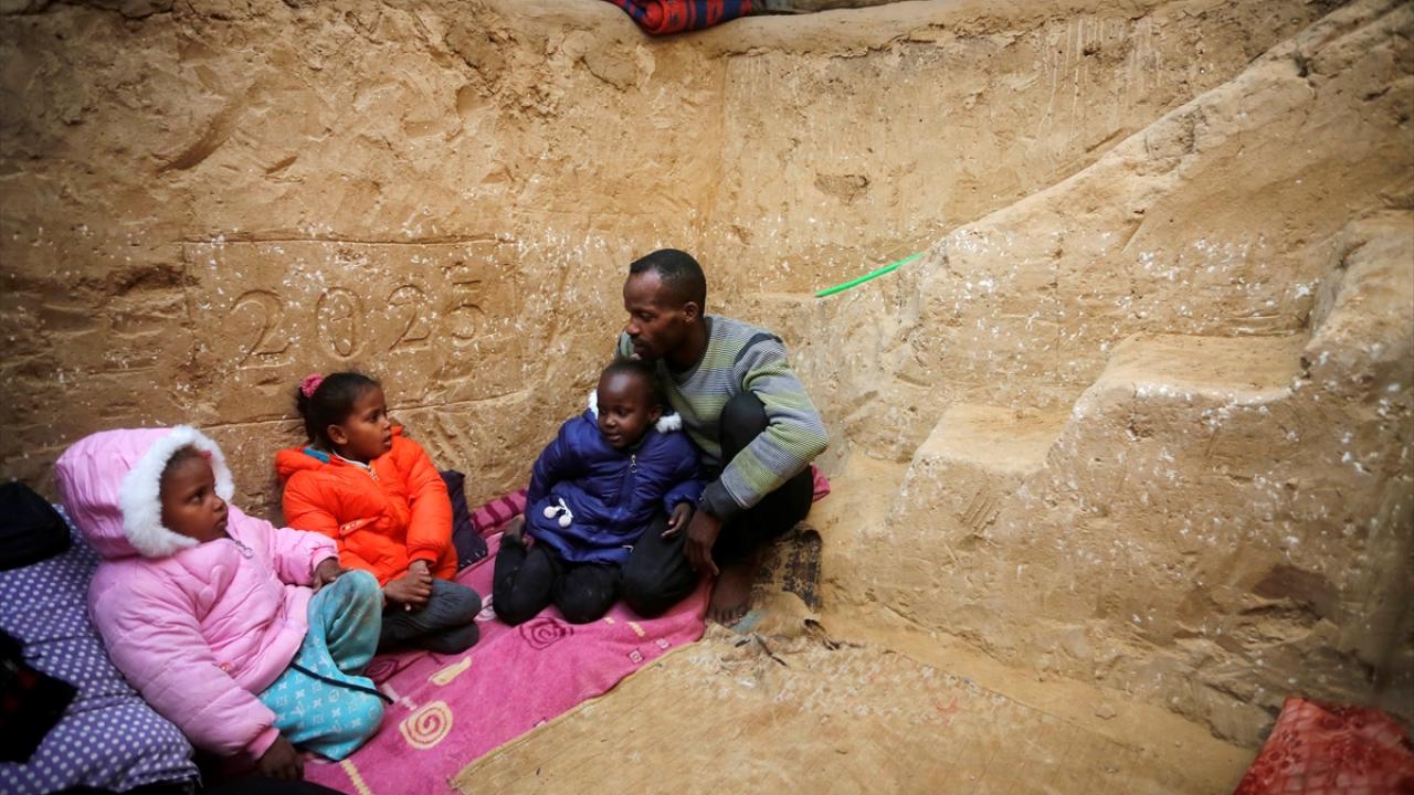 İsrail saldırıları altındaki Gazze Şeridi'nin orta kesimindeki Ez-Zuvayde bölgesine sığınan Filistinli Teysir Ubeyd, soğuktan korunma amaçlı kaldıkları çadırın altına kazdığı çukurda ailesiyle 2025 yılına girdi.