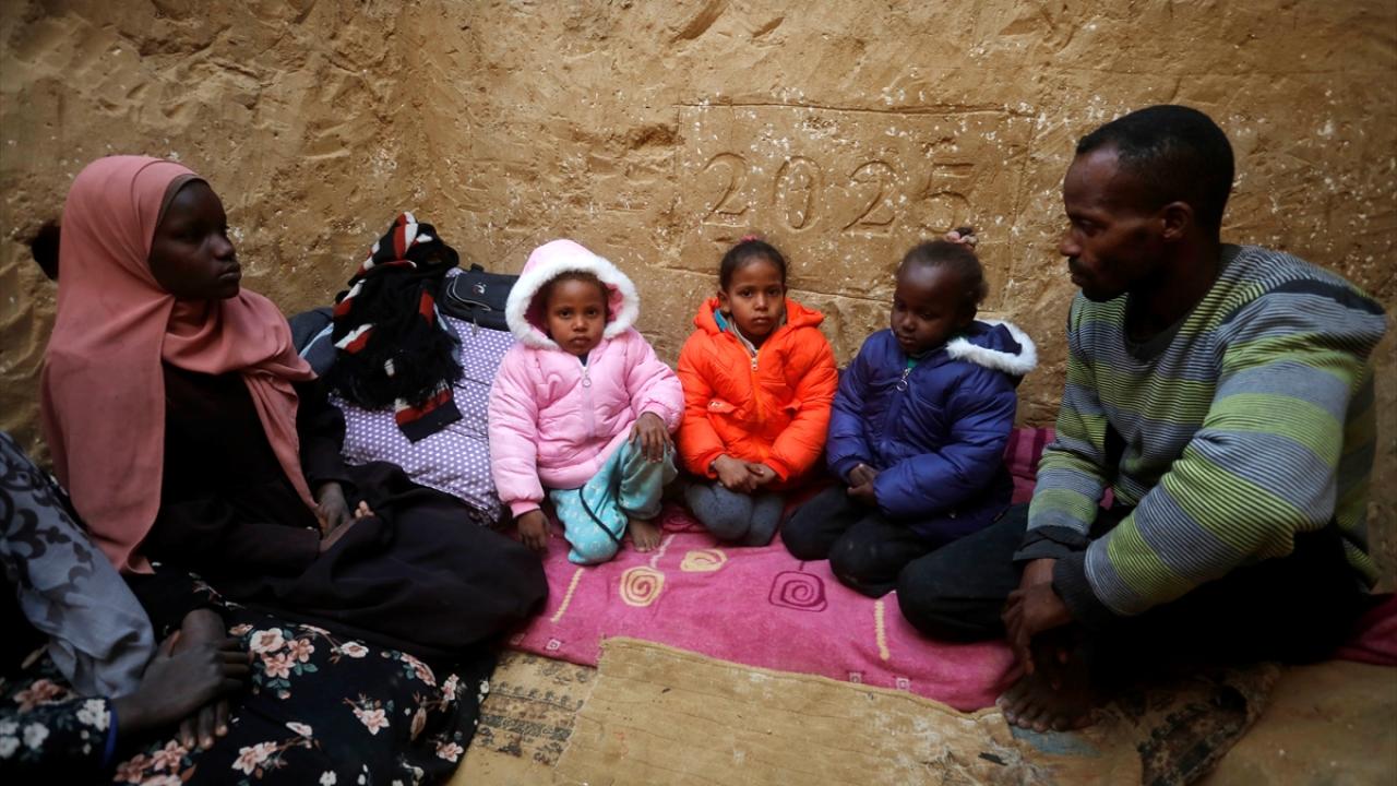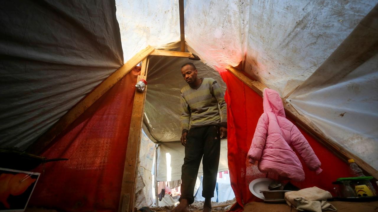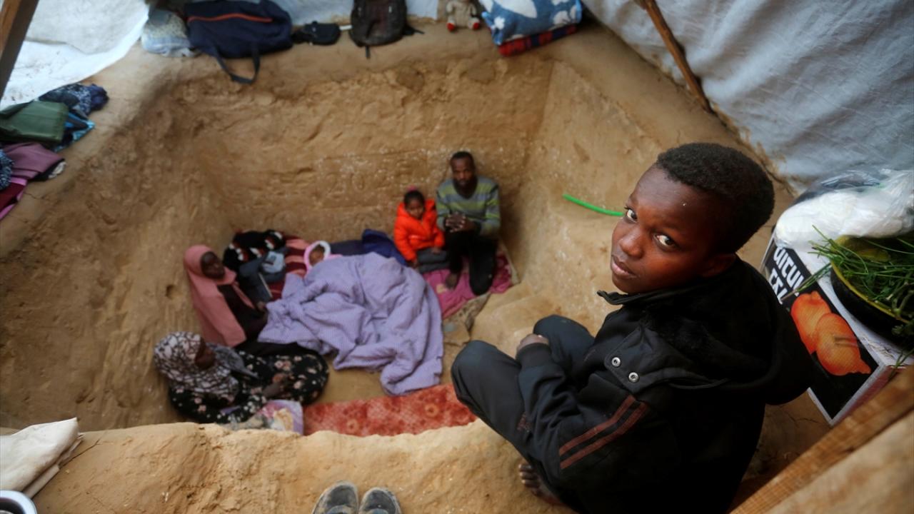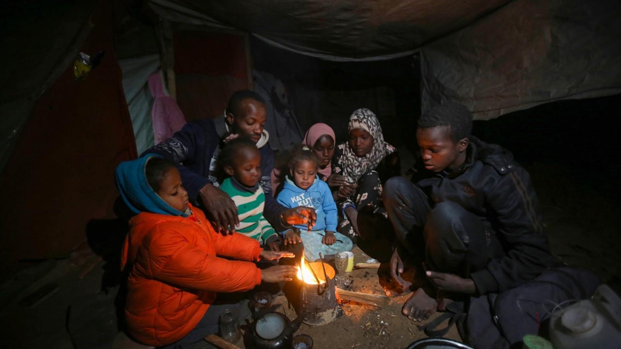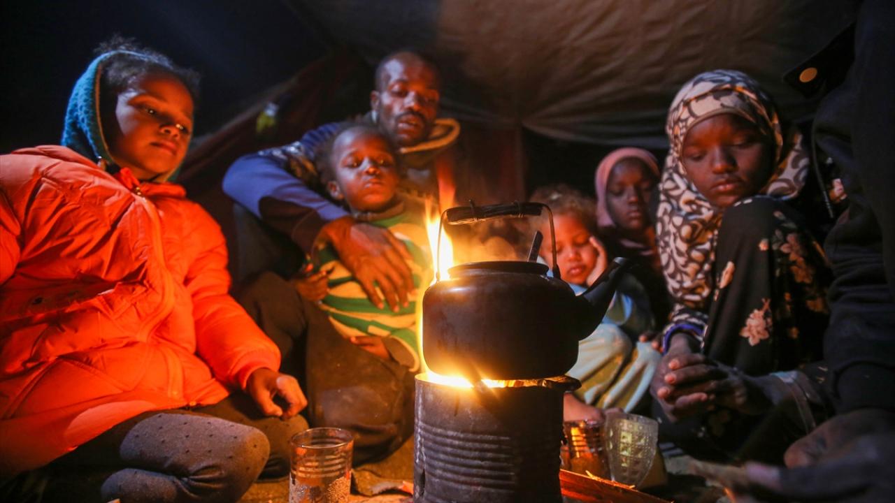 İsrail saldırıları altındaki Gazze Şeridi'nin orta kesimindeki Ez-Zuvayde bölgesine sığınan Filistinli Teysir Ubeyd, soğuktan korunma amaçlı kaldıkları çadırın altına kazdığı çukurda ailesiyle 2025 yılına girdi.