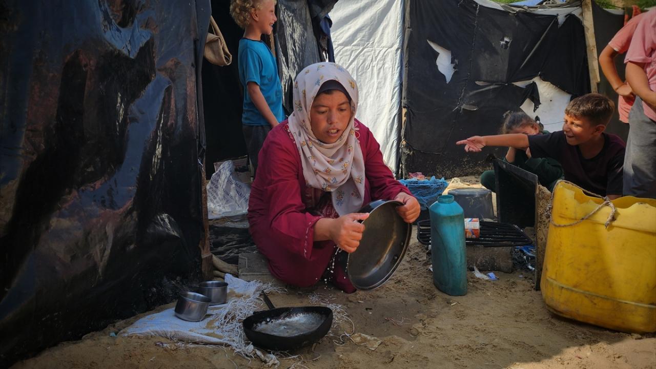 İsrail saldırıları nedeniyle Han Yunus kentindeki derme çatma çadırlara sığınan Filistinli aileler, çocuklarına yiyecek bulabilmek için her gün yoğun çaba sarf ediyor.