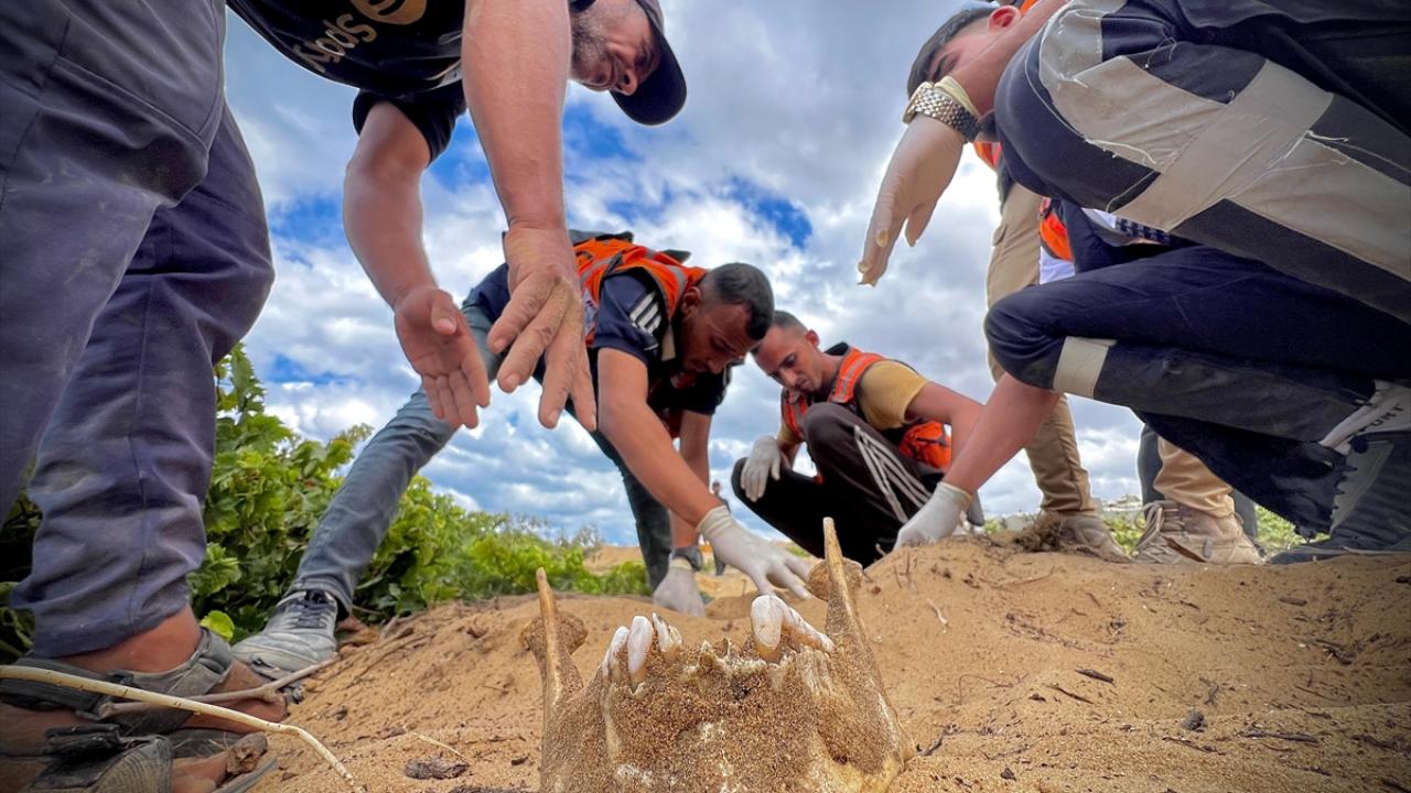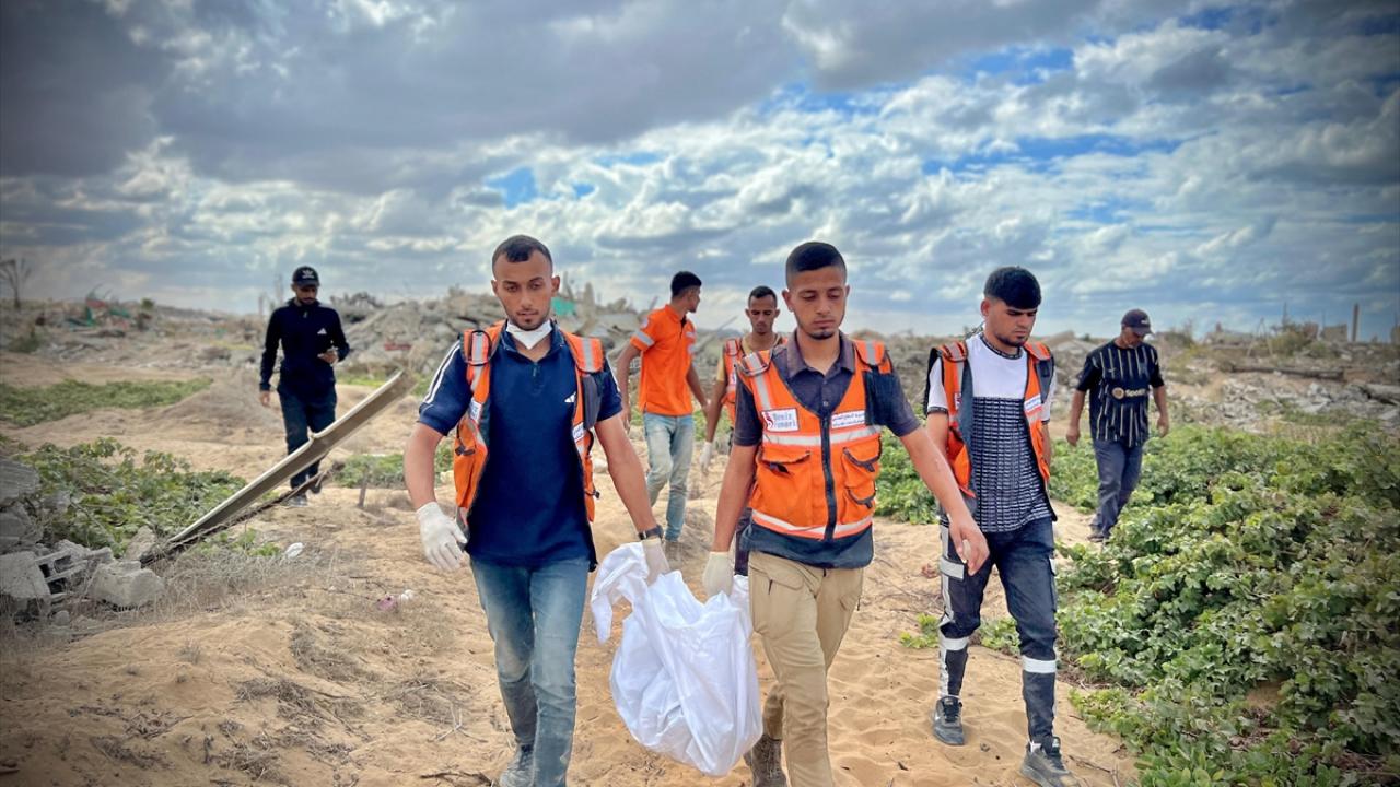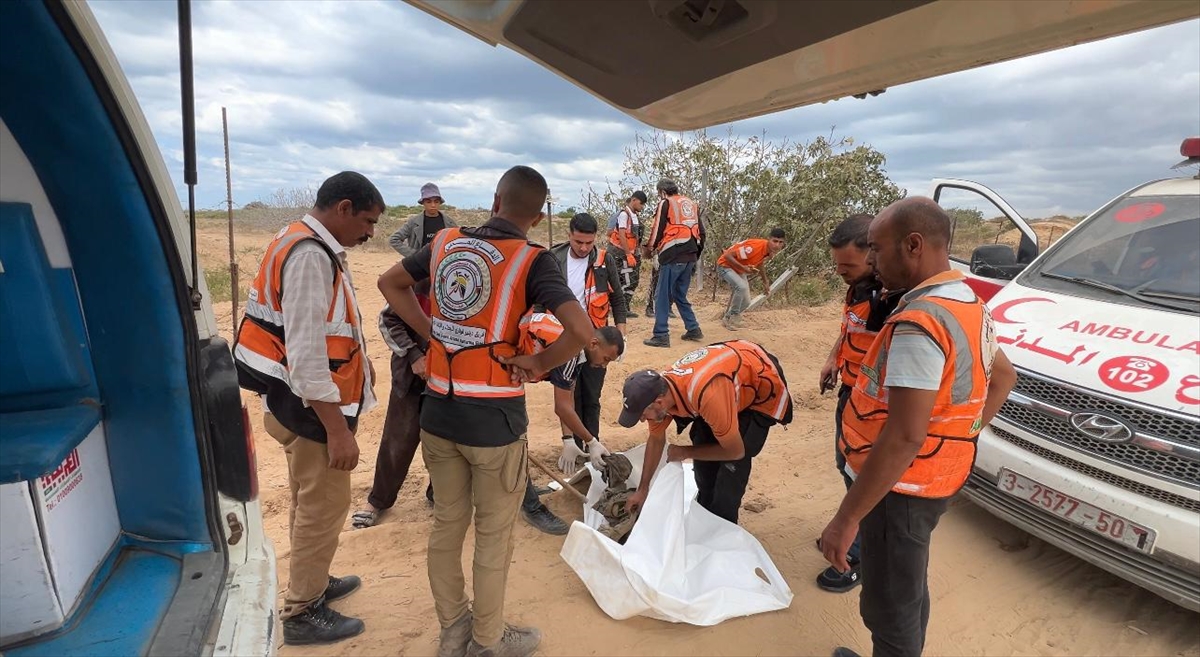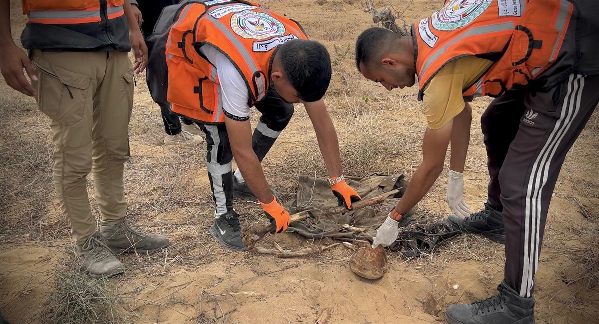Hamas ile İsrail arasında varılan ateşkesin ardından Filistin sivil savunma ekipleri, İsrail'in Gazze'nin orta kesimindeki Netzarim Koridoru'nda öldürdüğü Filistinlilerinin iskelet kalıntıların toplamaya başladı.