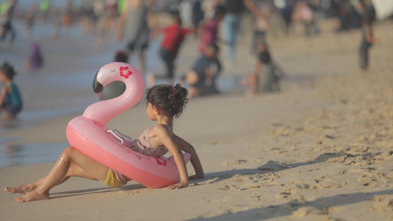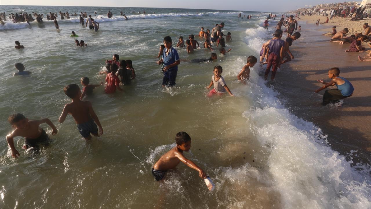 İsrail ordusunun Gazze Şeridi'ne yönelik havadan, denizden ve karadan düzenlediği saldırılar devam ederken saldırılardan bunalan Gazzeliler hem çocuklarını hem kendilerini rahatlatmak için deniz kenarlarına iniyor.