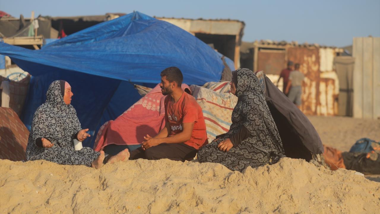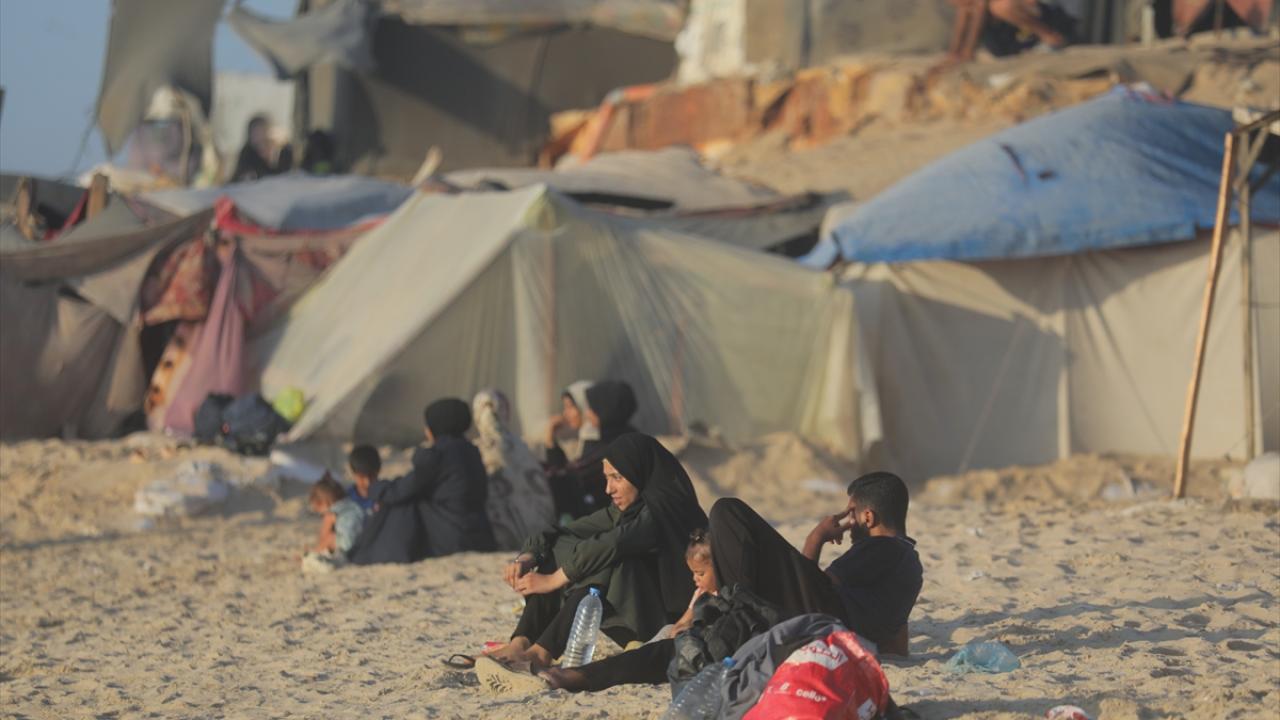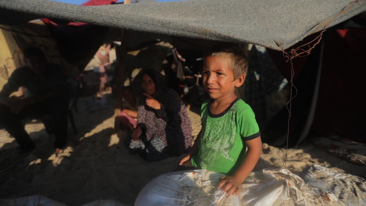 İsrail ordusunun saldırıları nedeniyle Gazze`nin farklı bölgelerinden Deyr Belah kentine göç eden ve kalacak yer bulamayan Filistinliler, deniz kenarında kurdukları derme çatma çadırlarda zor şartlar altında yaşam mücadelesi veriyor.
