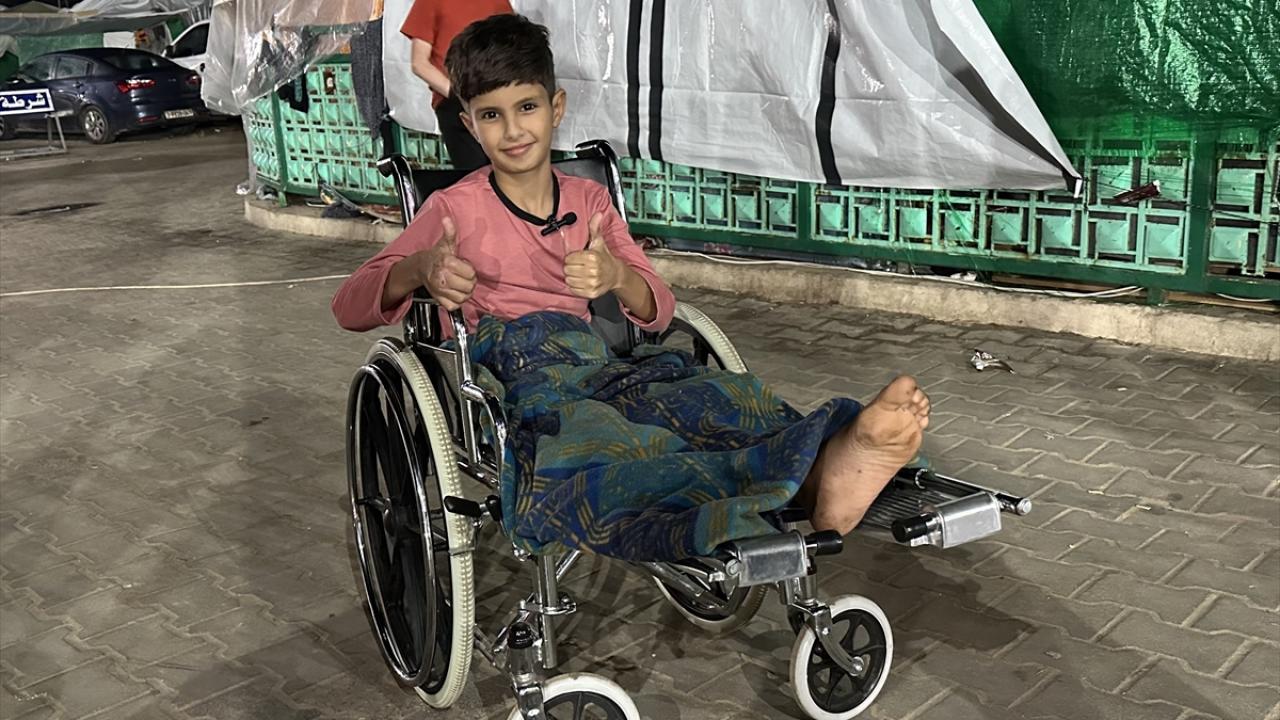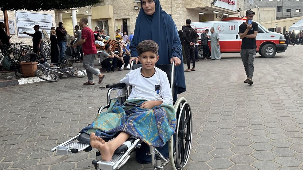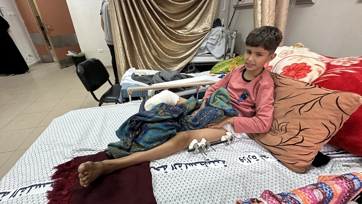 İsrail'in Gazze'nin Nasirat Mülteci Kampı'na düzenlediği saldırılarda arkadaşlarıyla futbol oynarken bacaklarından yaralanan Filistinli çocuk Saib Ebu Muhadi (11), kaleci olma hayalinden vazgeçmiyor. Saldırı sonucu bir bacağını kaybeden ve Aksa Şehitleri Hastanesi'nde tedavi altına alınan Ebu Muhadi, protez bacağa kavuşacağı günün hayalini kuruyor.