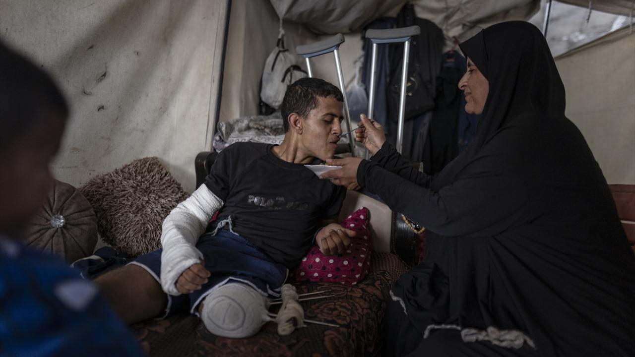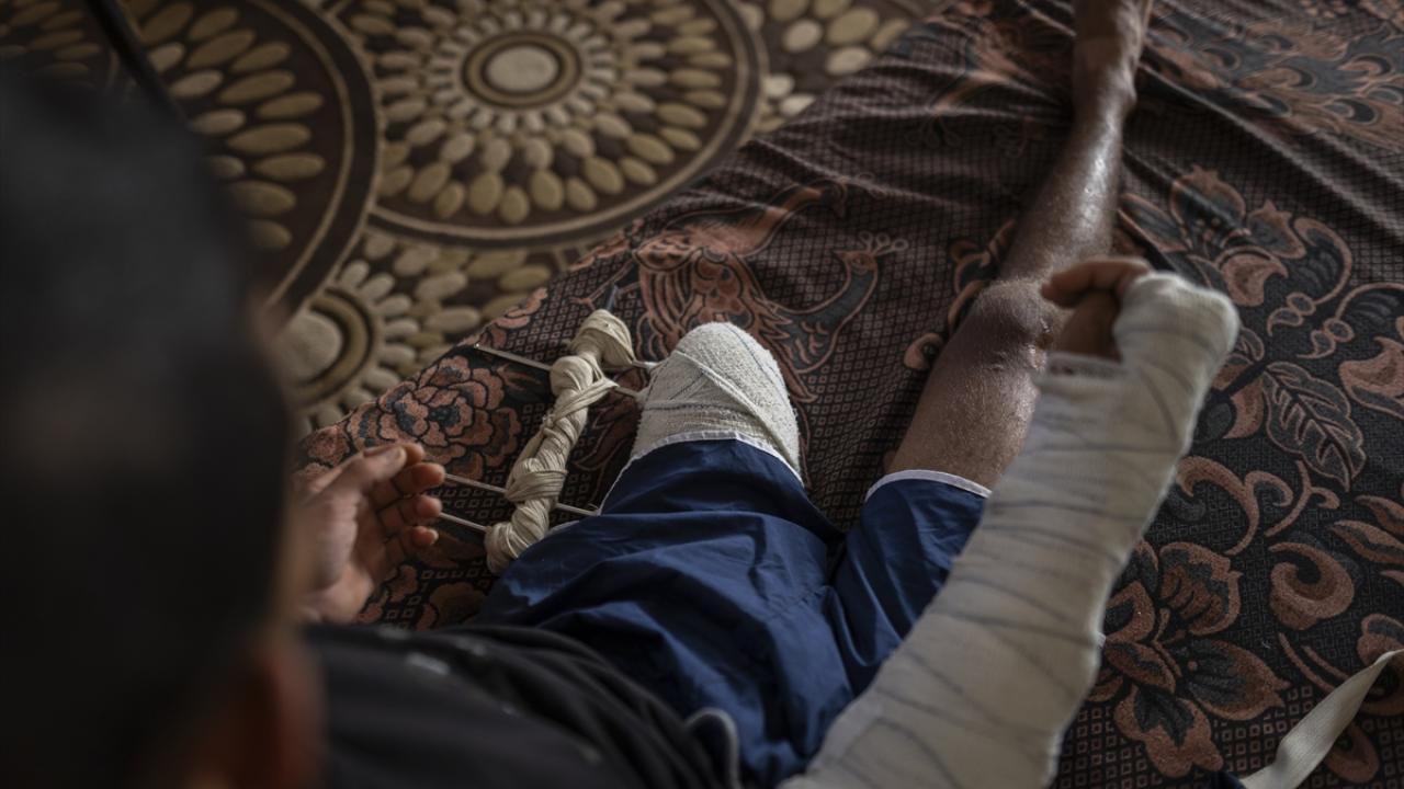 Gazze'de 15 Mart 2025’teki ateşkes sırasında ısınmak amacıyla odun toplarken Nitsarim Koridoru'nda İsrail saldırısına uğrayan Filistinli Musab Kattoş, elinde ve bacaklarında aldığı yaralarla hayata tutunmaya çalışıyor.